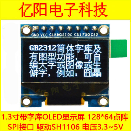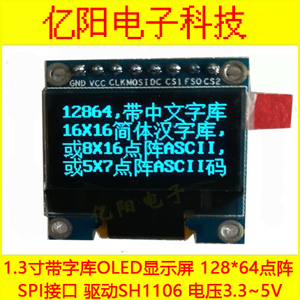 1.3 -INCH OLED -отображает китайскую библиотеку шрифтов 12864 точечная линия 1.3 -INCH OLED MODULE 1106 Интерфейс SPI