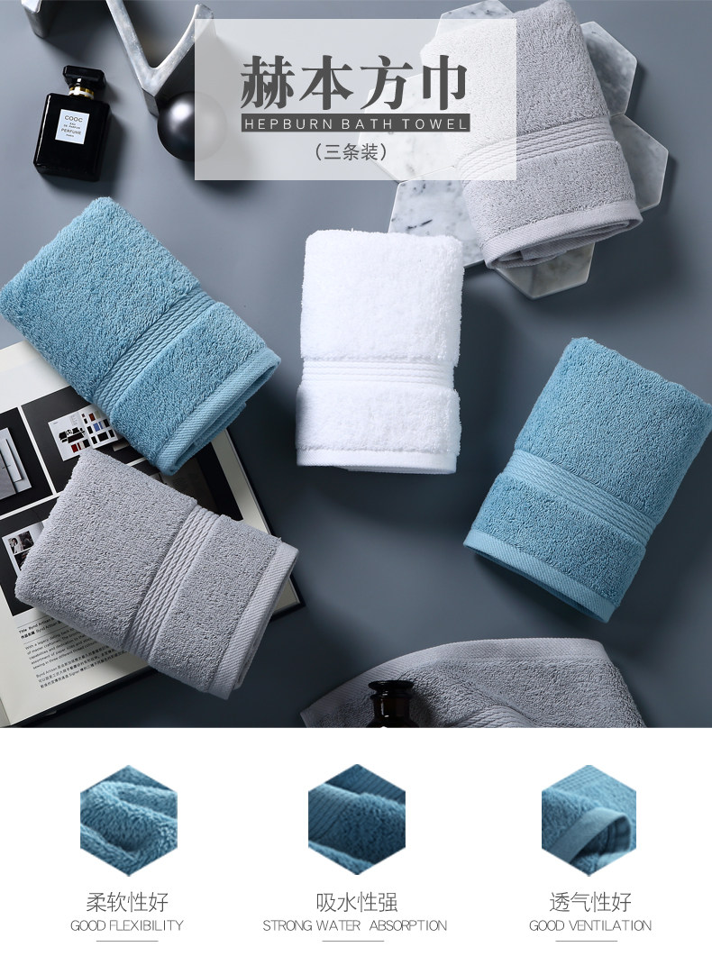 Хлопковый квадратный носовой платок, хлопковое полотенце для умывания для отеля, 3 шт, хорошо впитывает воду, увеличенная толщина