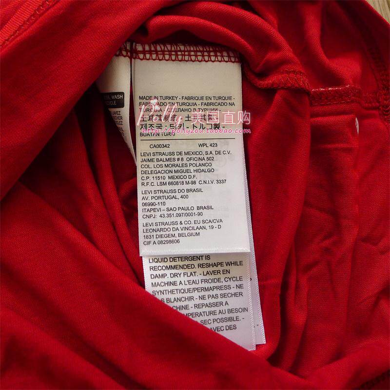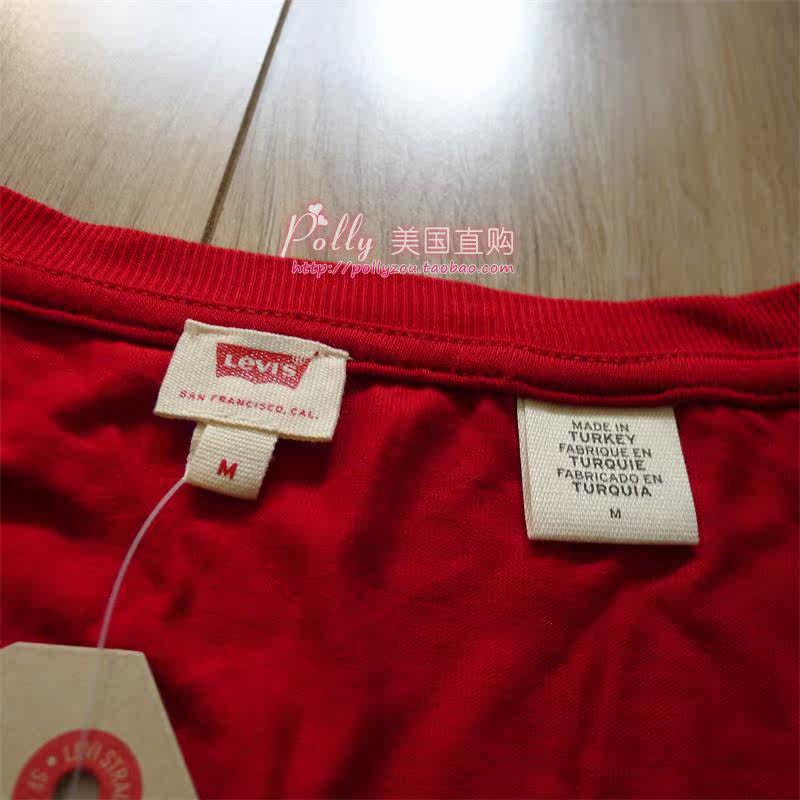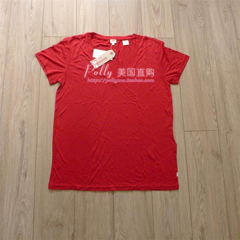 Levis Levis Женский темно -красный v -neck -short -sleeed t -Fork