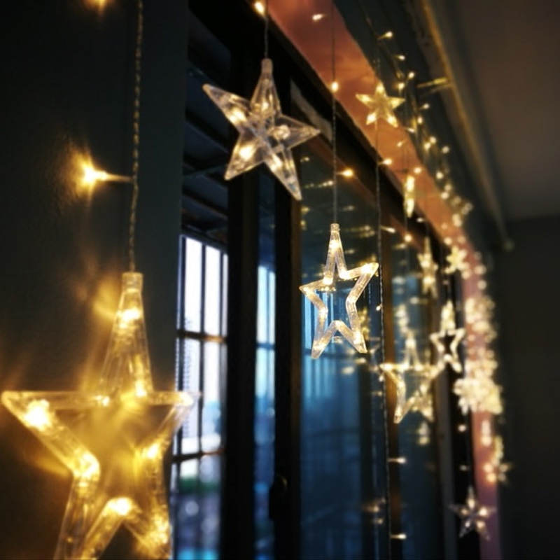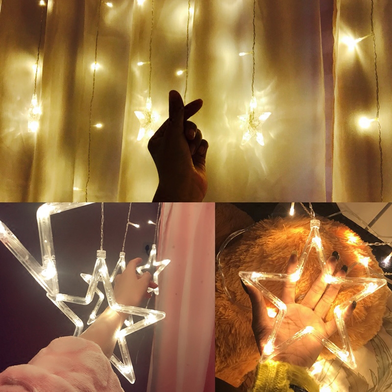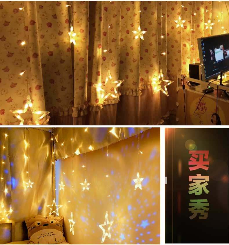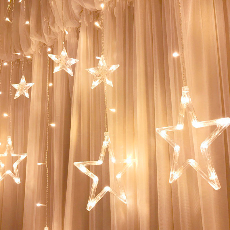 Атмосфера на день рождения освещение освещения светлую световой струны светильники, полные из занавеска, занавеска