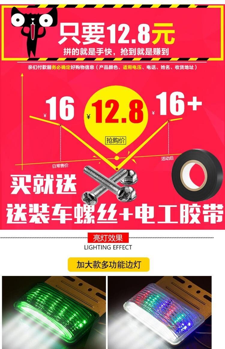 Большой грузовик светодиодный боковой свет боковой свет 24 В талия световой легкий водонепроницаемый супербон