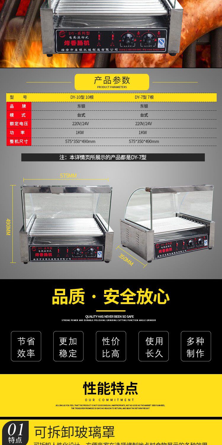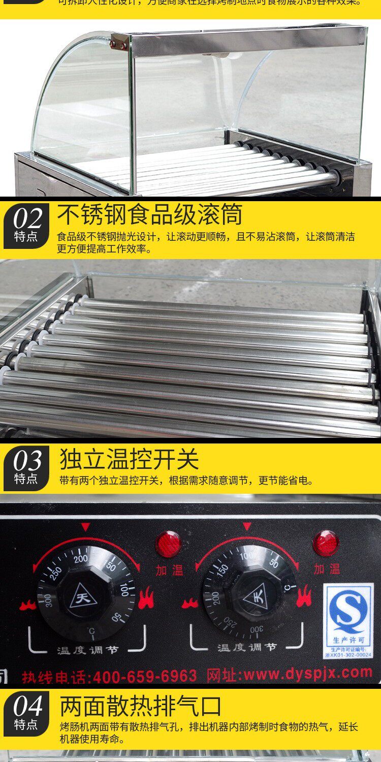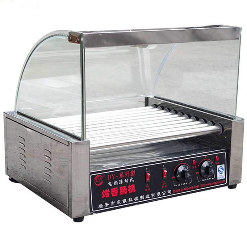 Dongyin Коммерческая запеченная лосомочная машина со стеклянной капюшоном Полностью автоматическая колбаса с колбасой маленькая машина для хот -дога 7 10 бесплатная доставка