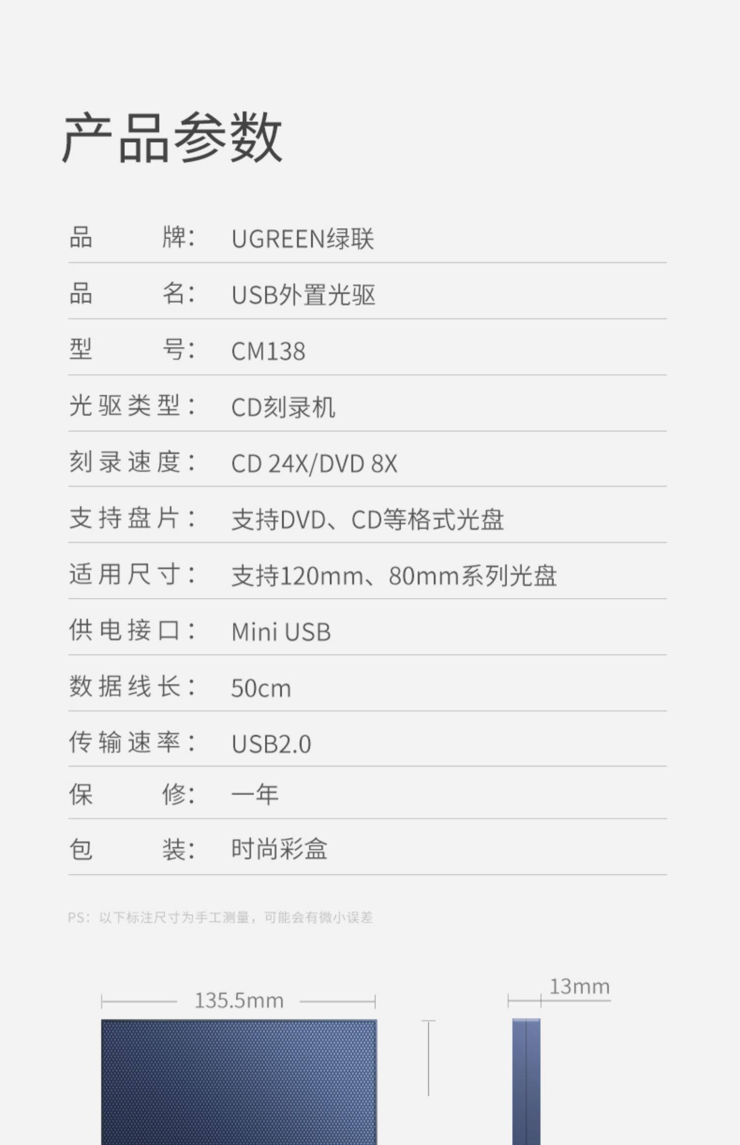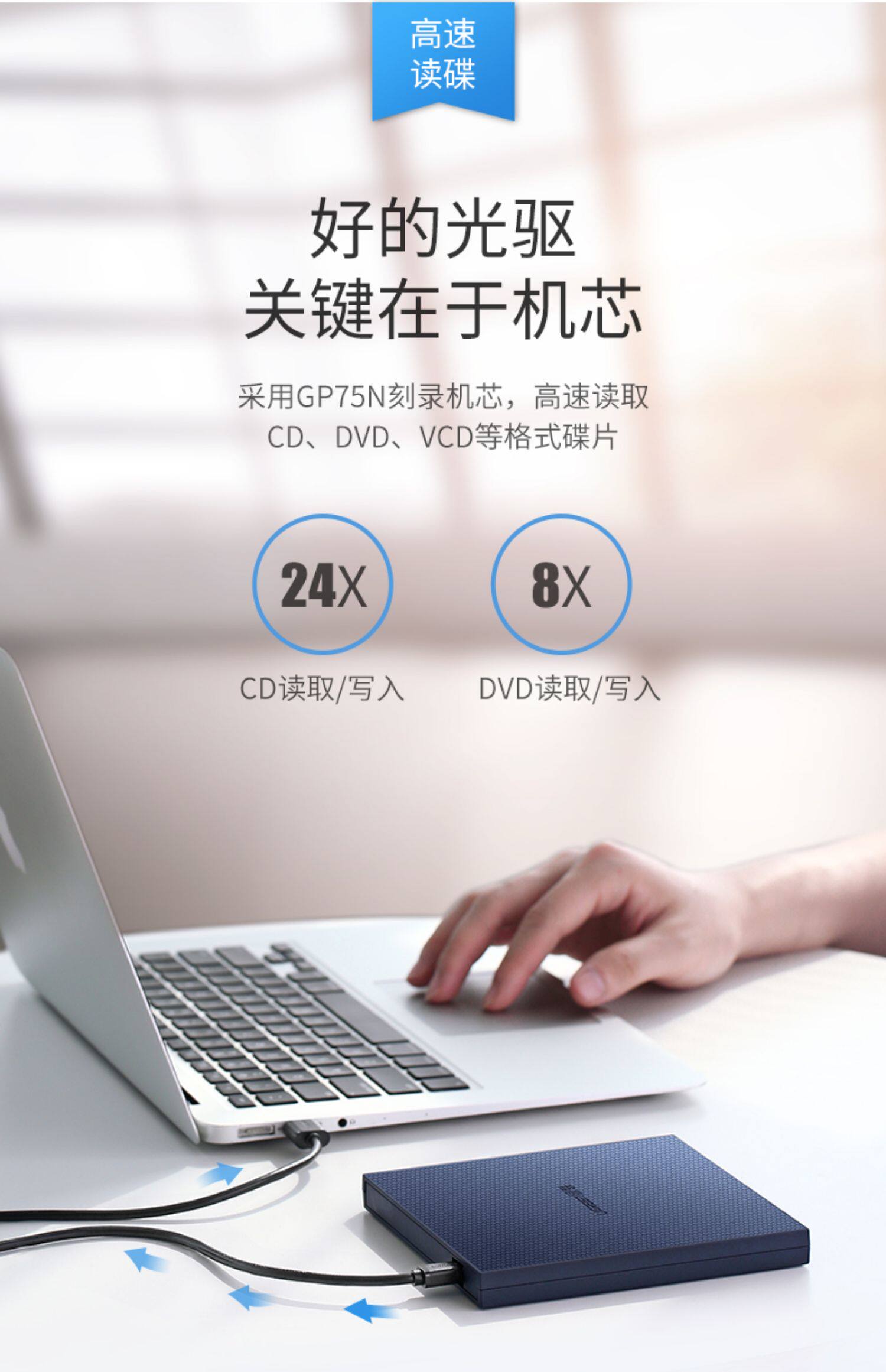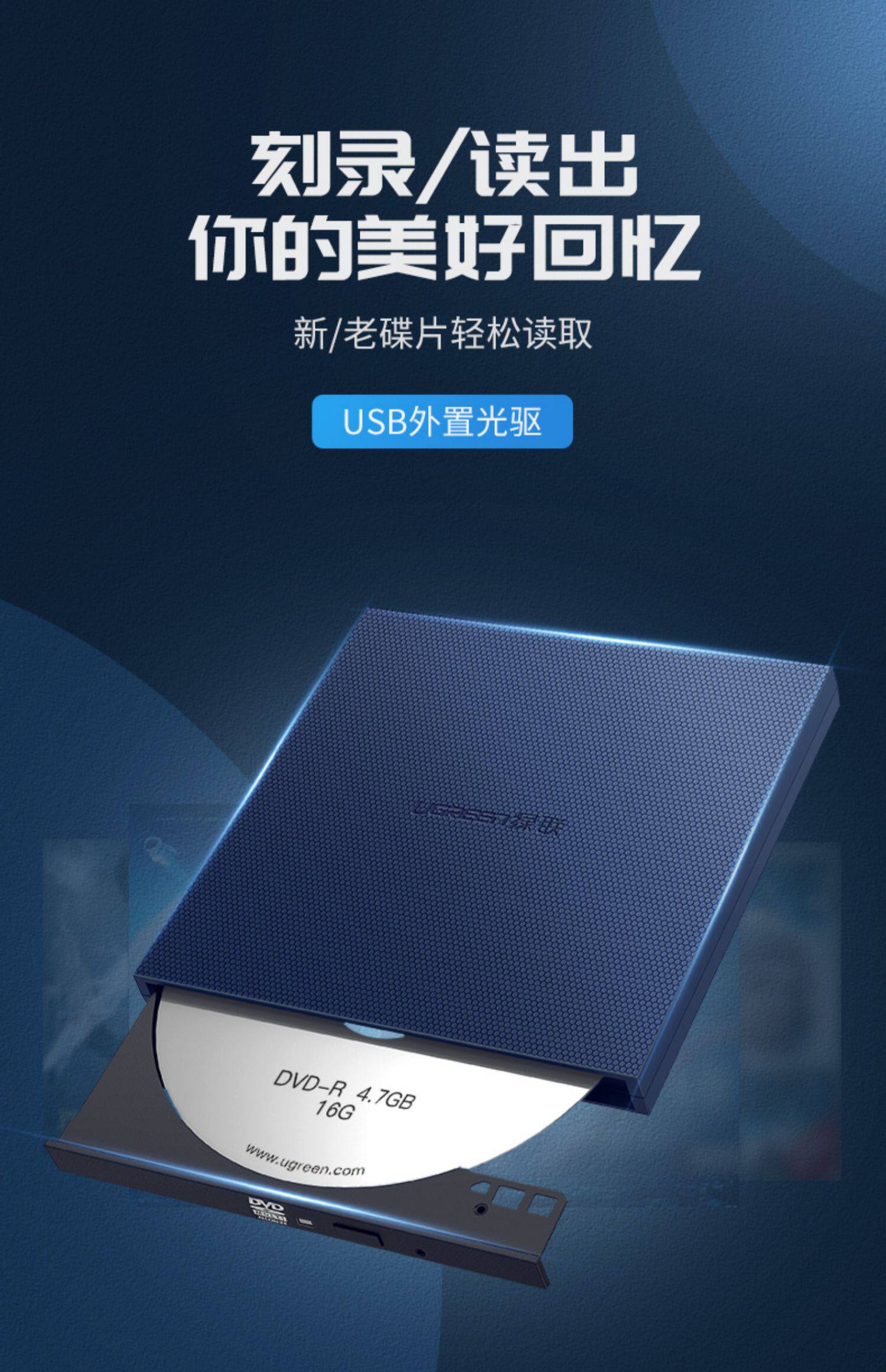 绿联 Внешний оптический диск USB Mobile CD -ноутбук Внешний DVD -диск CD Record