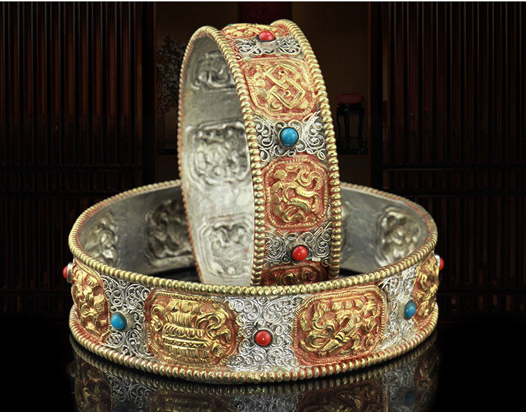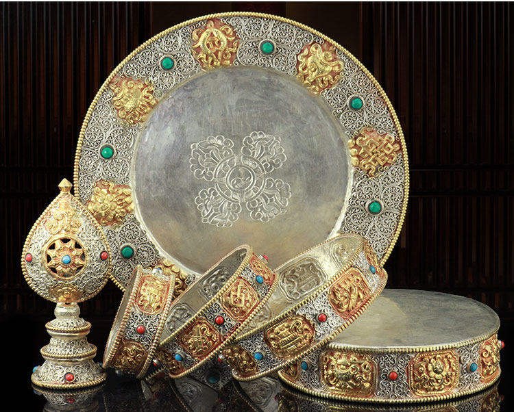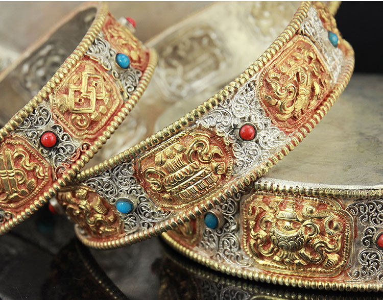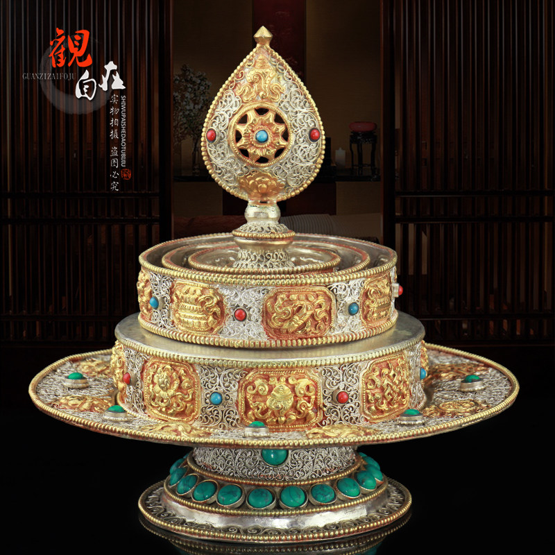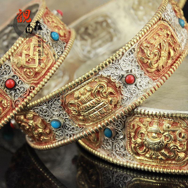 Тибетский Непал импортировал Манцпан чистый бронзовый сиу, мангдан, резьба ручной работы и ремонт восемь благоприятных манча -луо 12 куб.