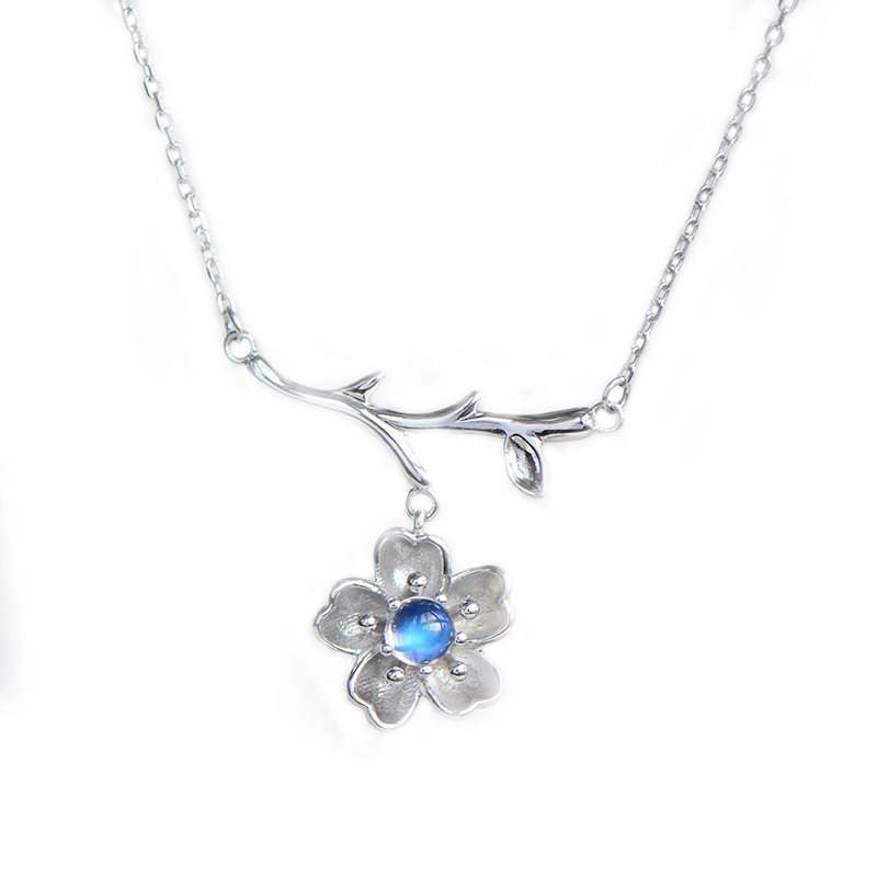 Подвеска из нефрита, цепочка до ключиц, лунный камень, серебро 925 пробы, японские и корейские, простой и элегантный дизайн