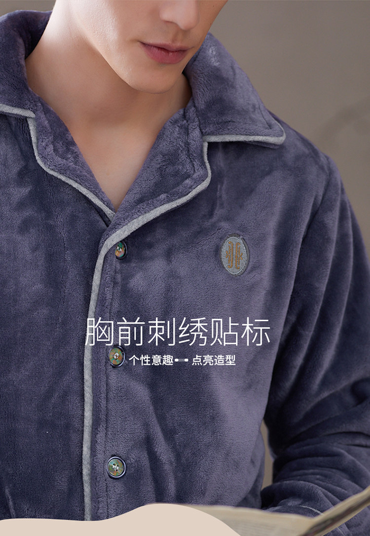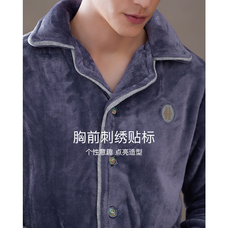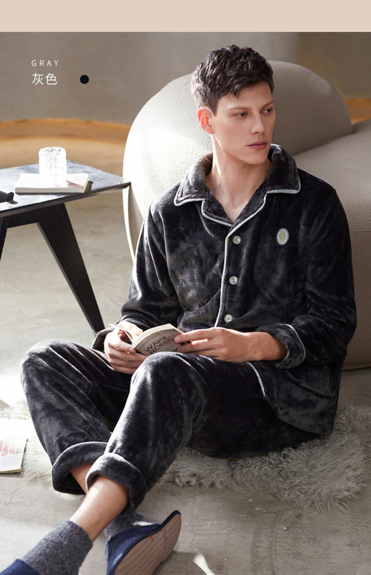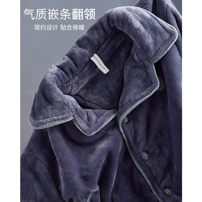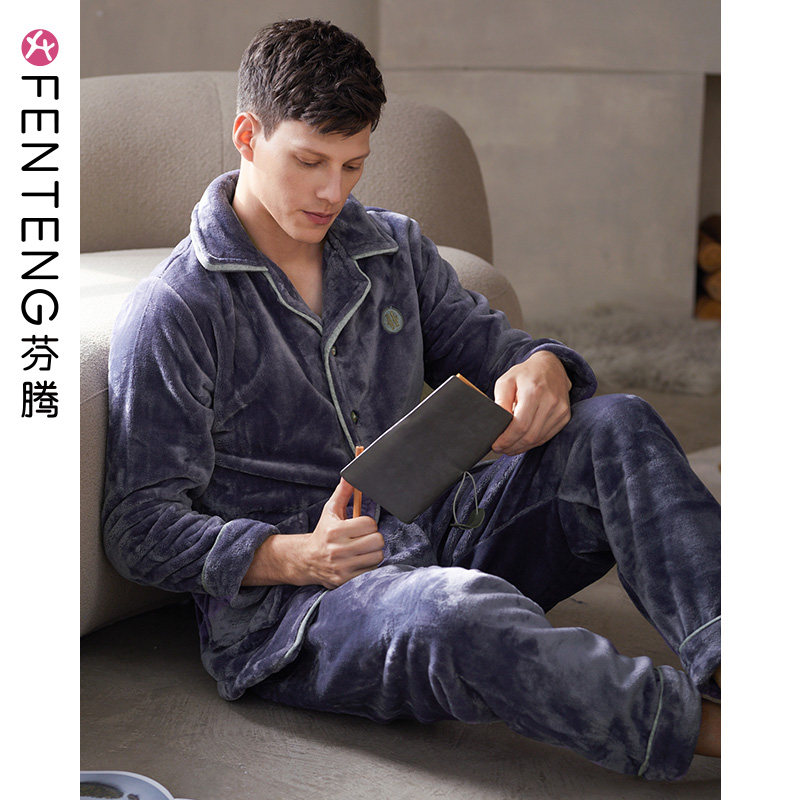 芬腾 Мужская коралловая бархатная зимняя пижама, кардиган, фланелевый лонгслив, комплект, увеличенная толщина, большой размер, осенняя