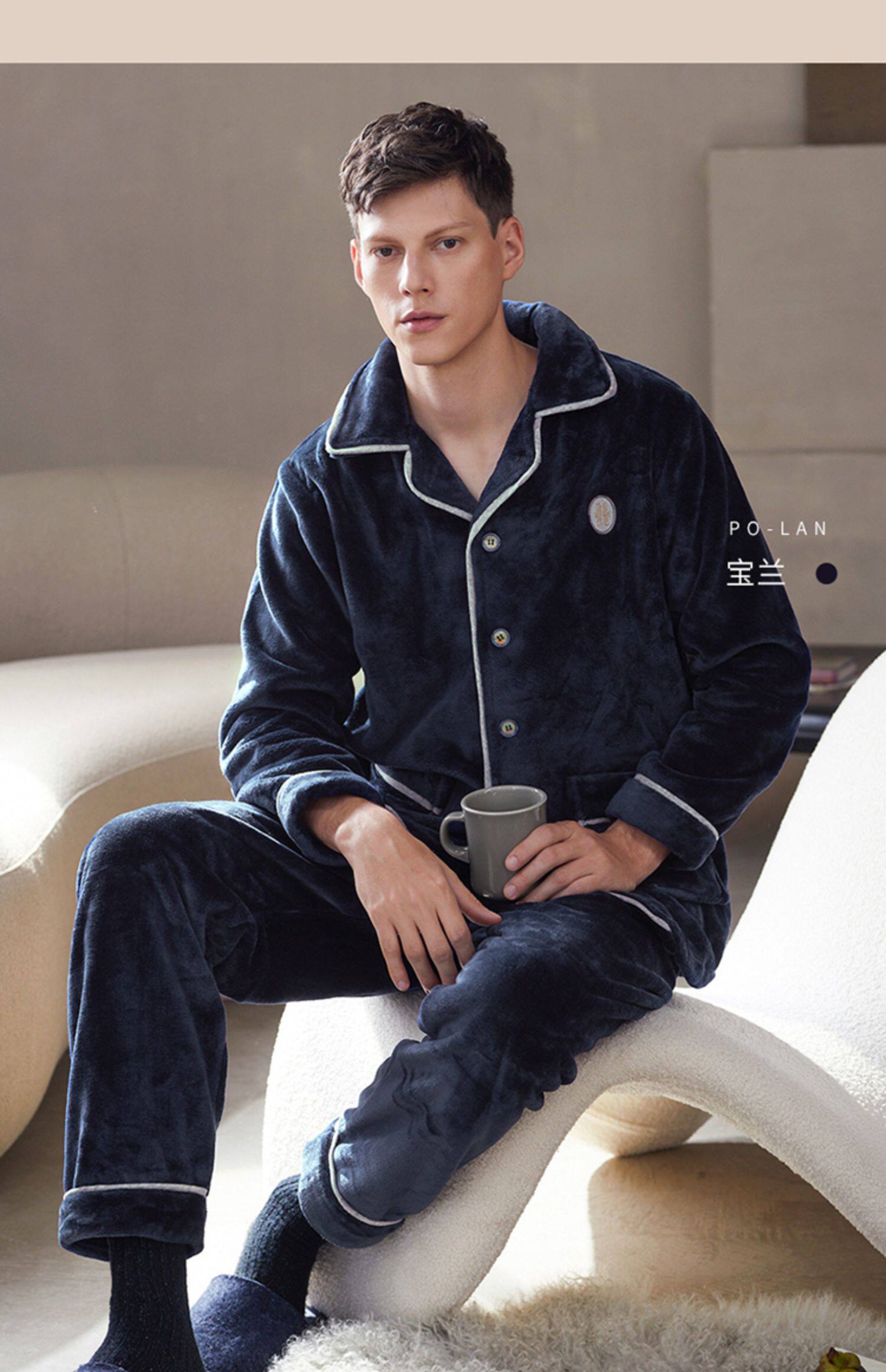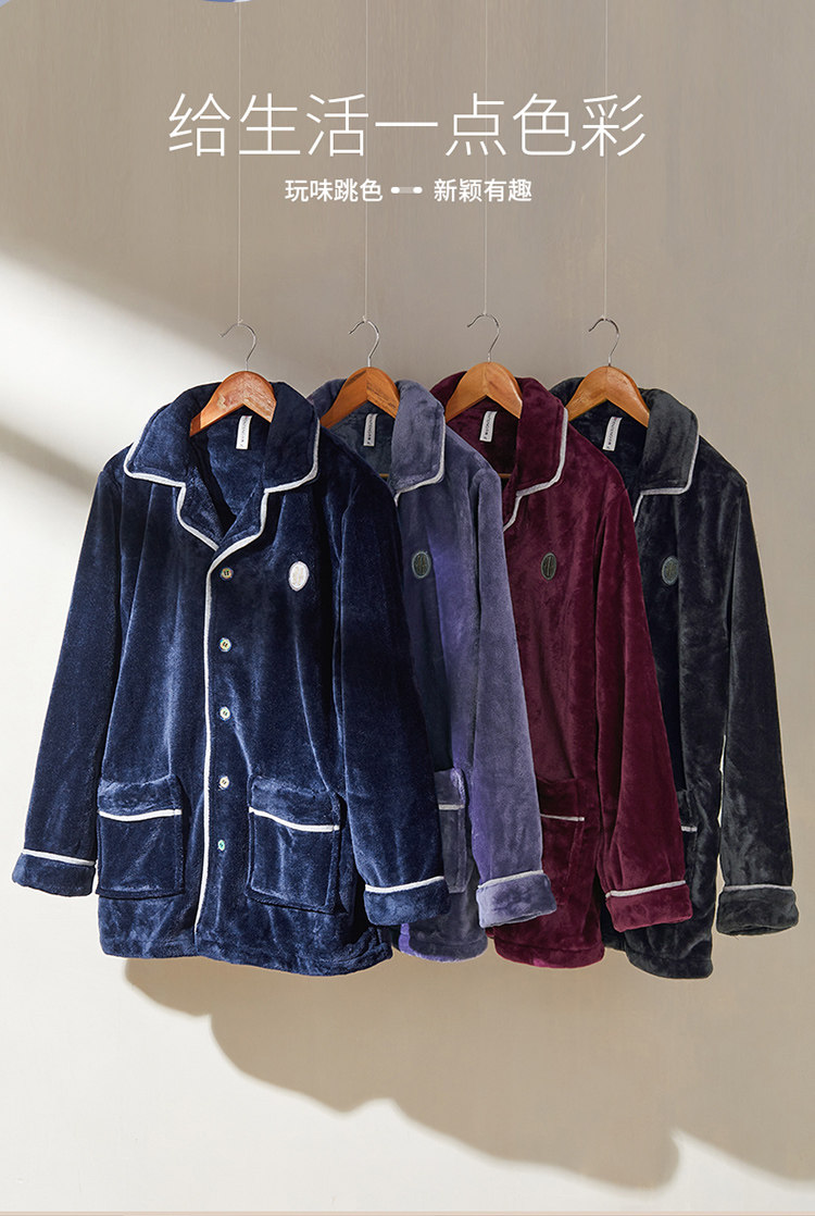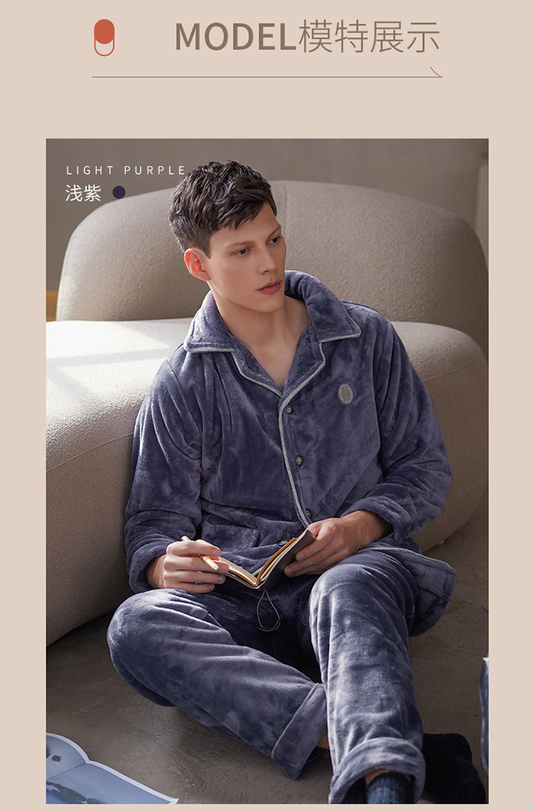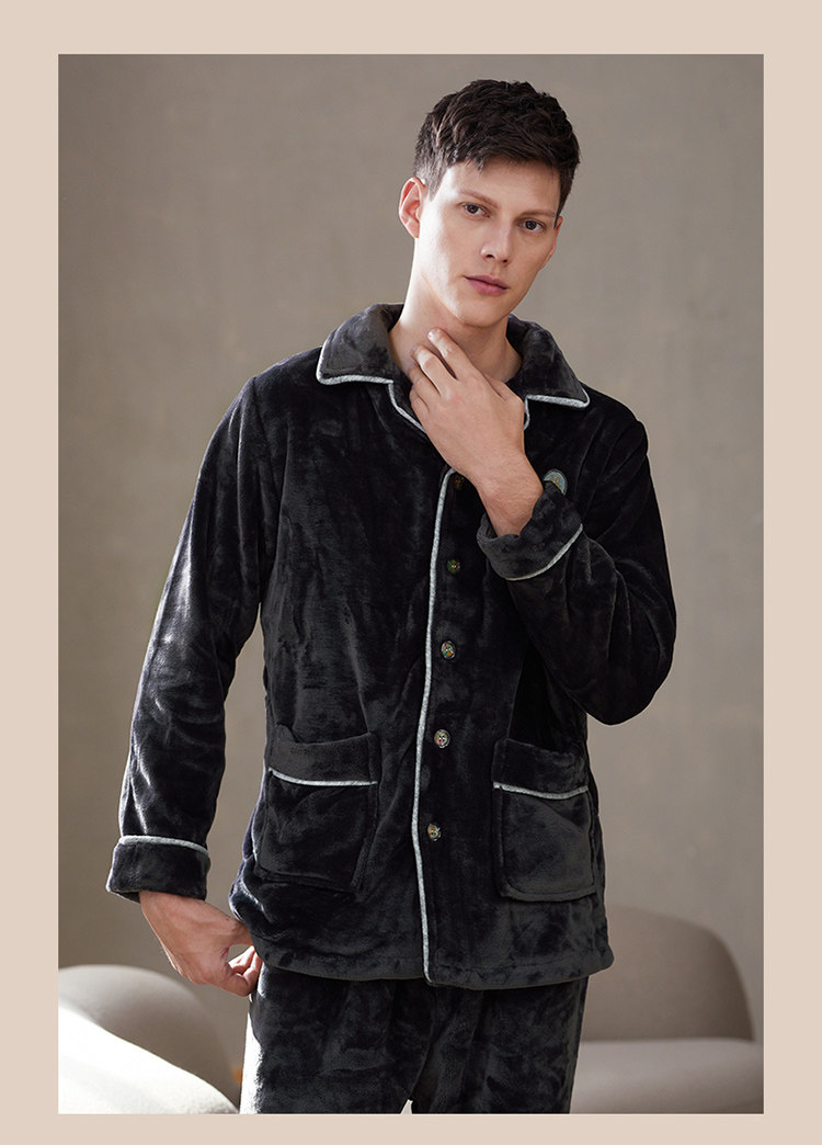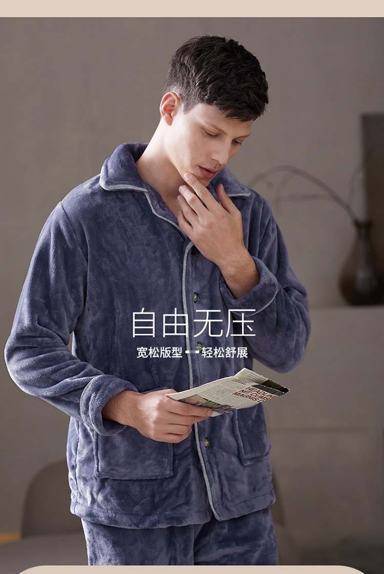 芬腾 Мужская коралловая бархатная зимняя пижама, кардиган, фланелевый лонгслив, комплект, увеличенная толщина, большой размер, осенняя