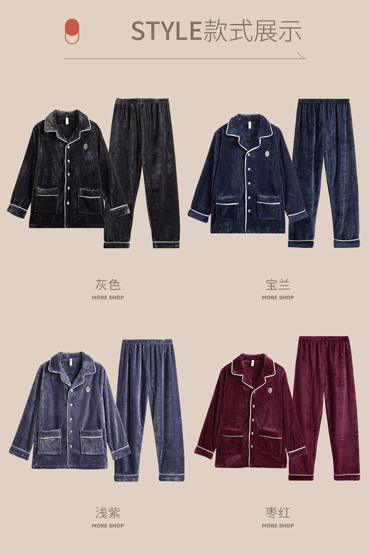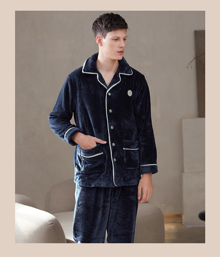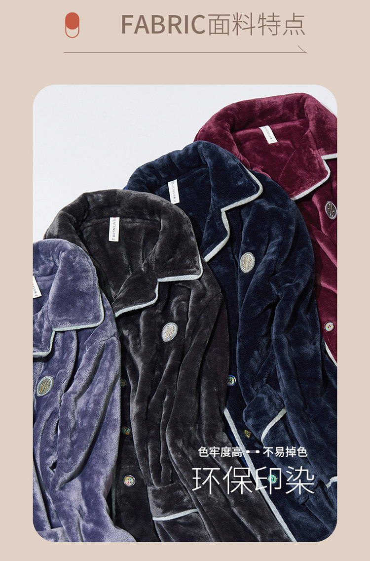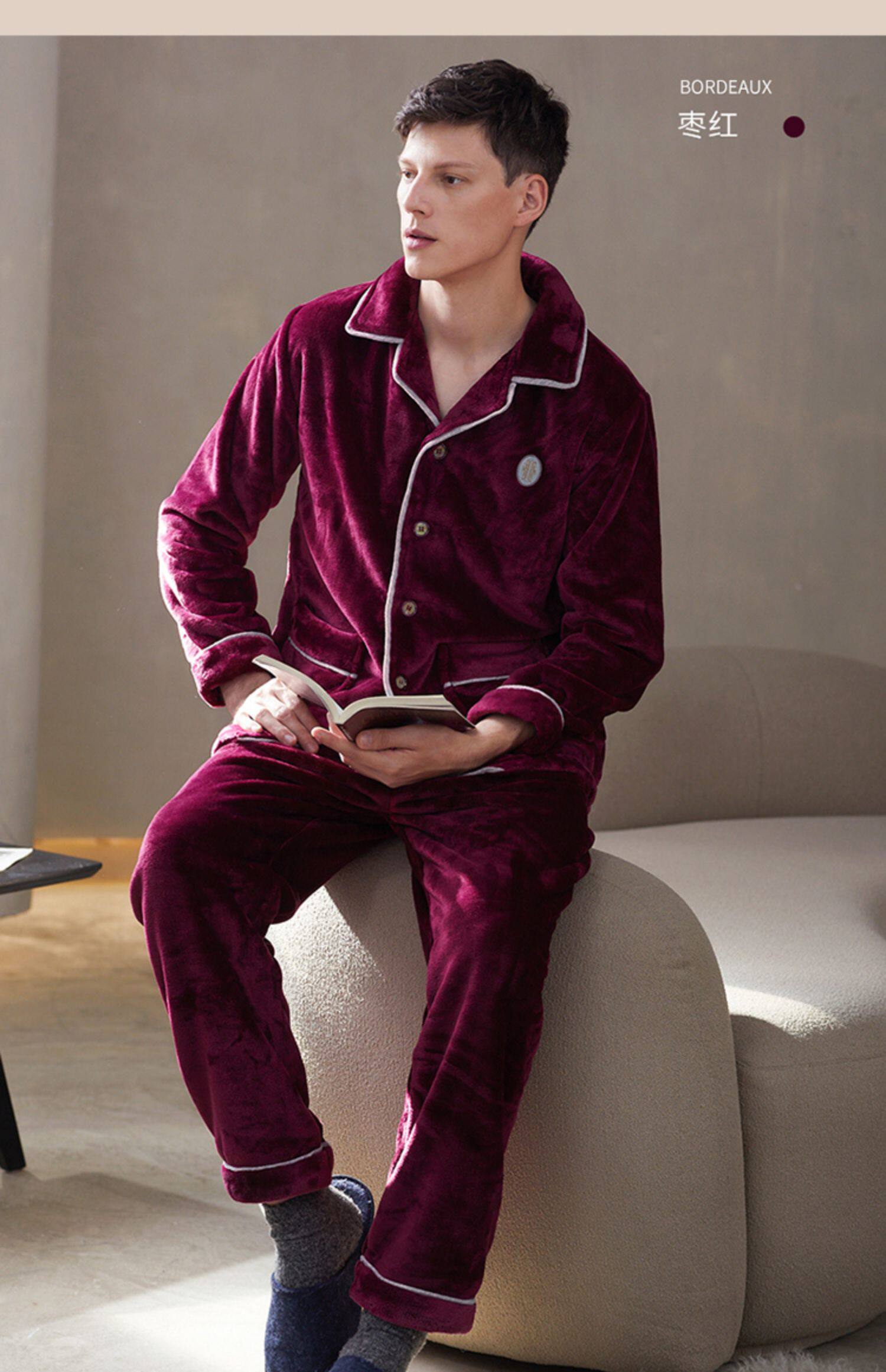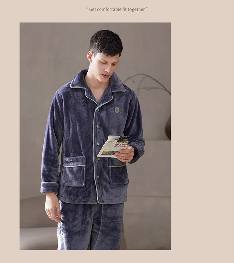 芬腾 Мужская коралловая бархатная зимняя пижама, кардиган, фланелевый лонгслив, комплект, увеличенная толщина, большой размер, осенняя