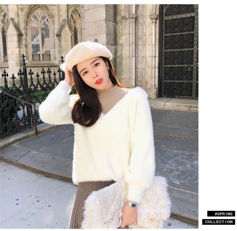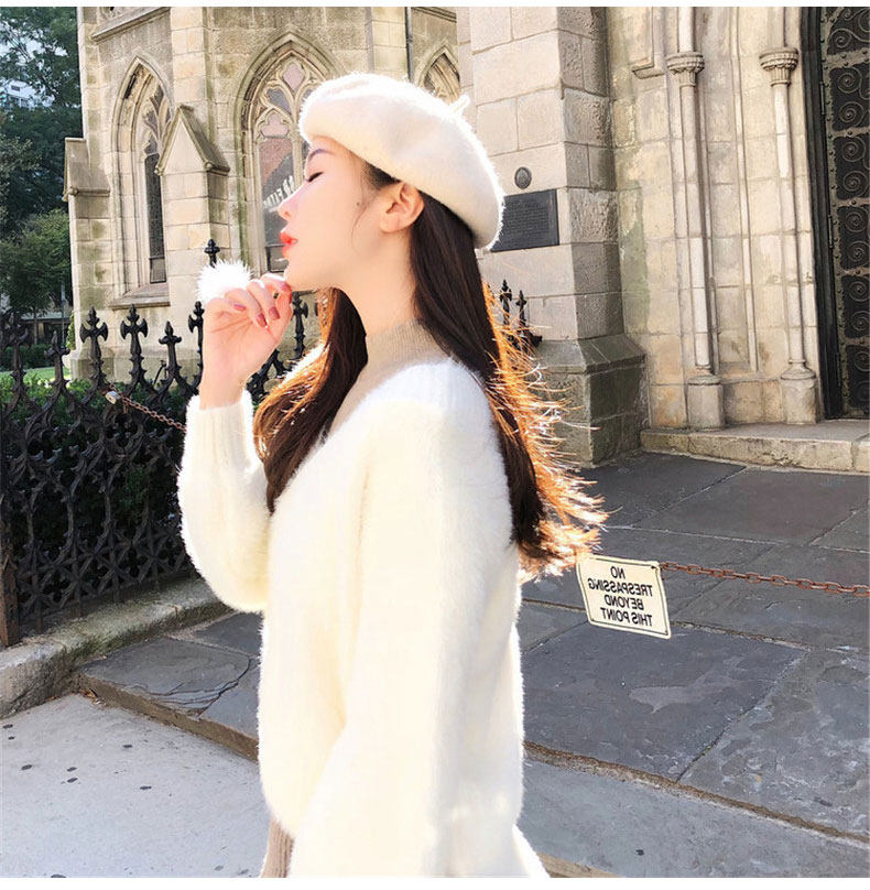 Демисезонный свежий комплект, пуховик, свитер, яркий броский стиль
