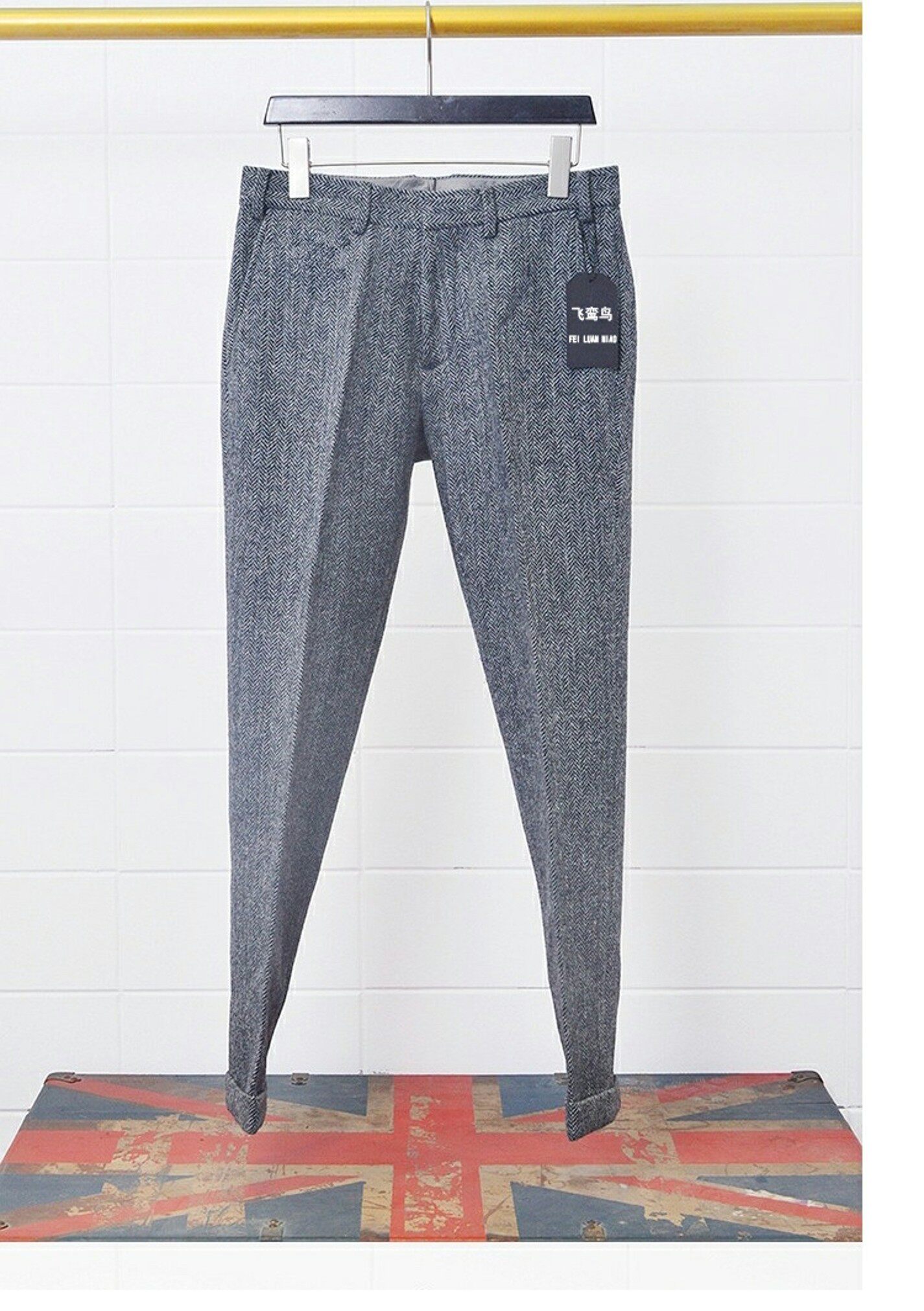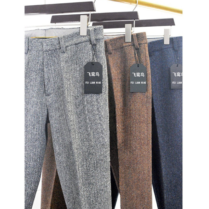 Демисезонные шерстяные штаны, увеличенная толщина, европейский стиль, свободный прямой крой, большой размер