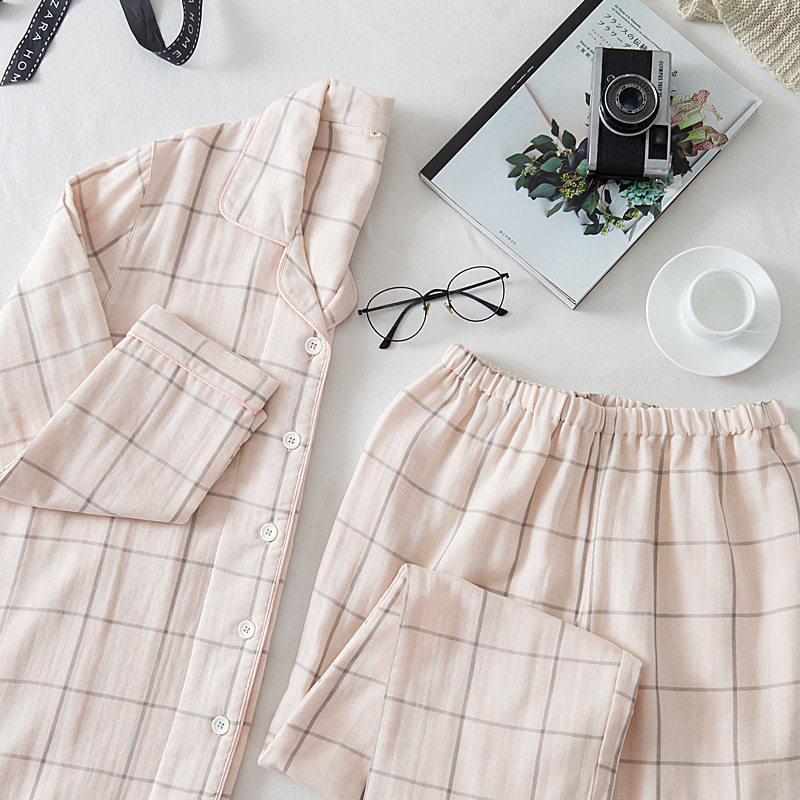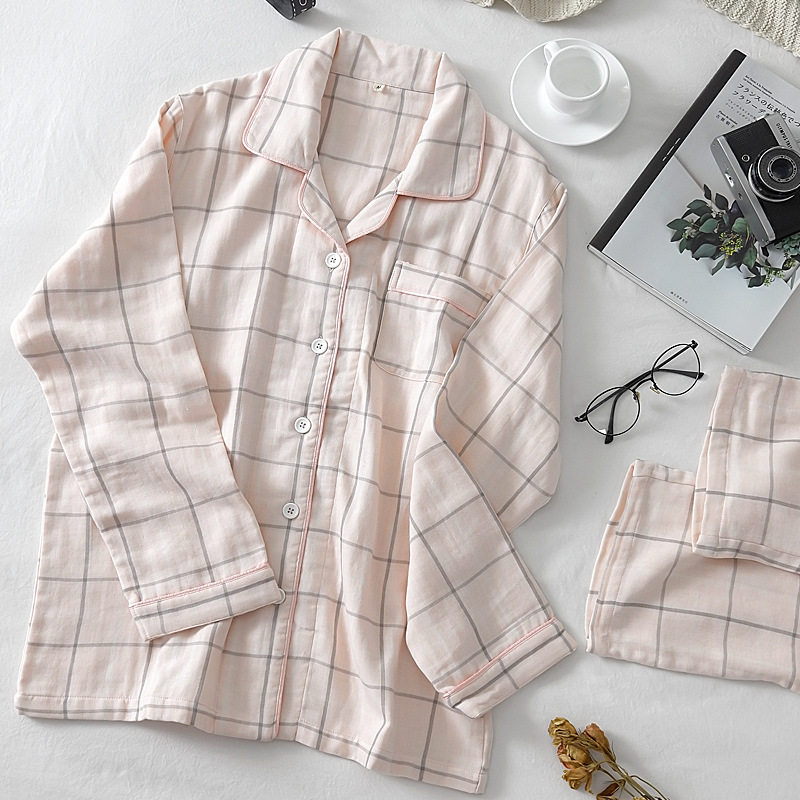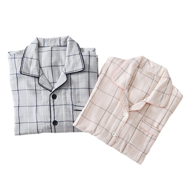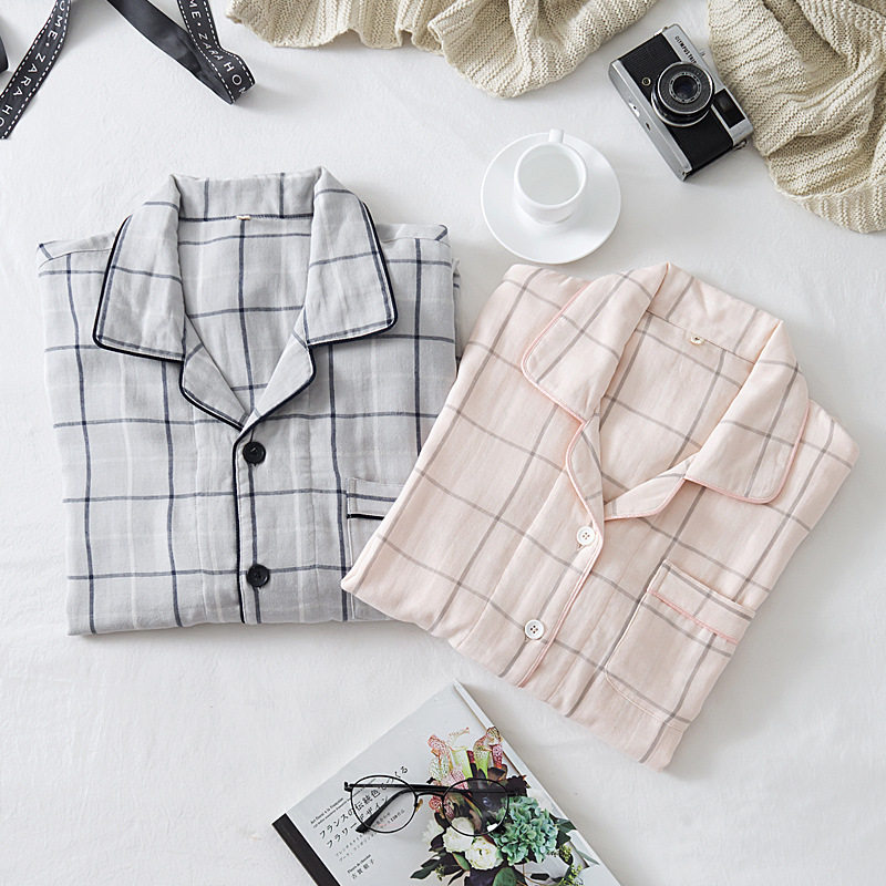Японский осенний хлопковый лонгслив подходит для мужчин и женщин, пижама, комплект, домашняя одежда, простой и элегантный дизайн, для влюбленных