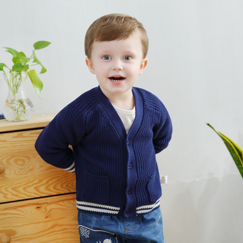 Детский хлопковый осенний кардиган, трикотажный свитер для мальчиков, V-образный вырез