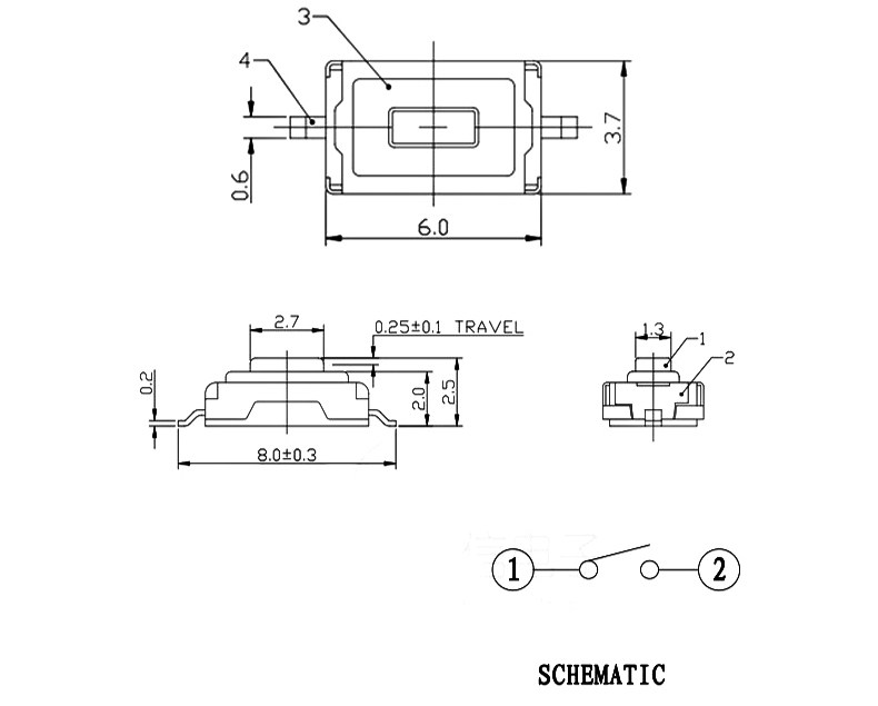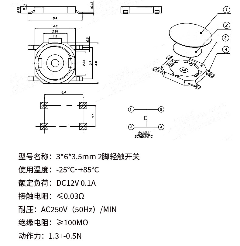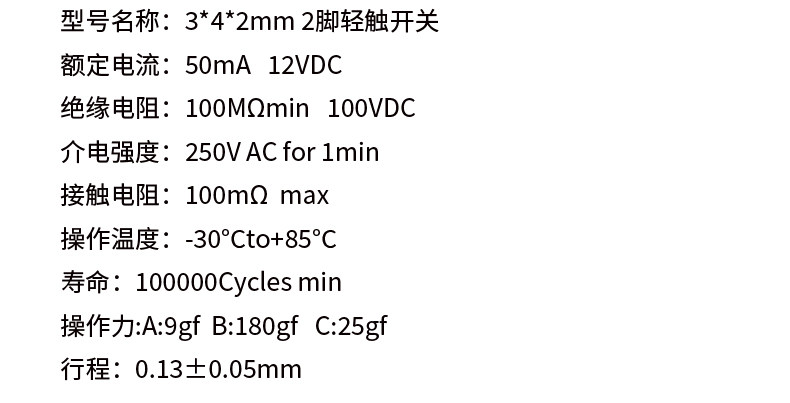 Нажмите на патч переключателя непосредственно, кнопка Micro -Motion Switch 3*4*2/3*6*4.3/4*4*4*1,5/6*6*5 2 PIN
