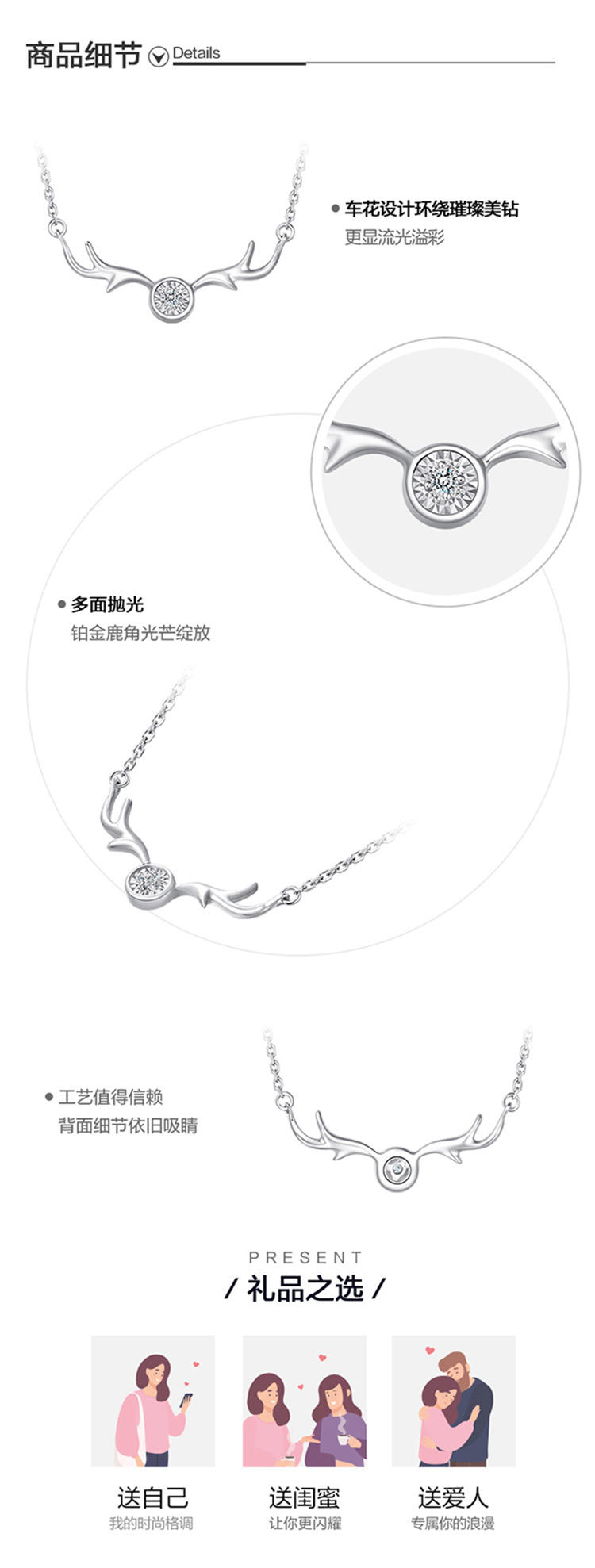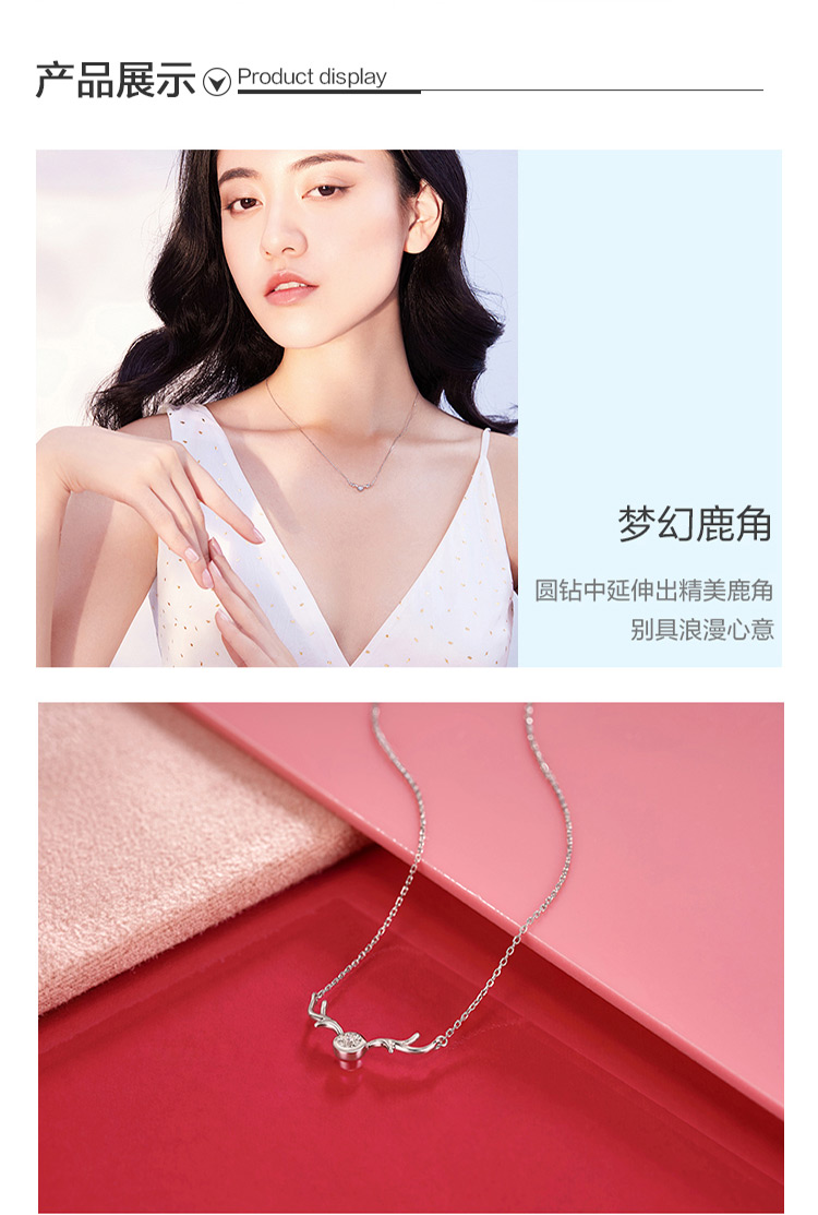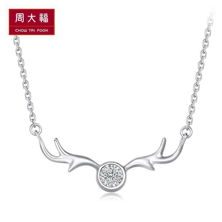 周大福 Платиновая бриллиантовая подвеска, цепочка до ключиц, платина 950 пробы