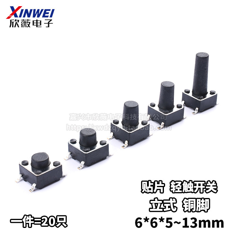 (20 штук) Патч-сенсорный переключатель 6*6*5/6/8/9/13 мм Микро-движущая кнопка 4 штифта Медные ноги с высокой температурой сопротивлением
