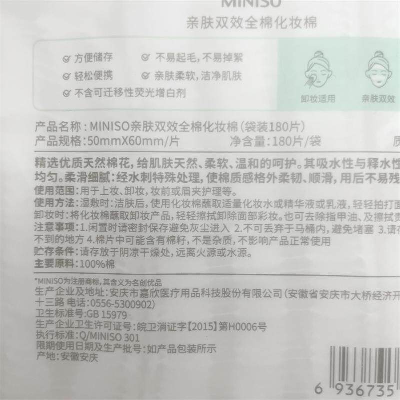 Miniso, мягкие ватные диски, хлопковое влажное средство для снятия макияжа
