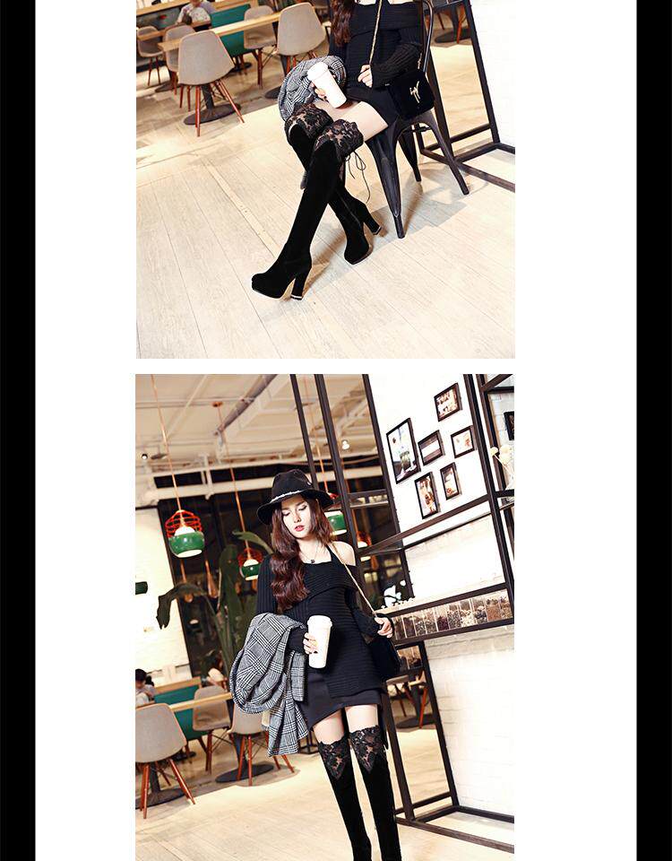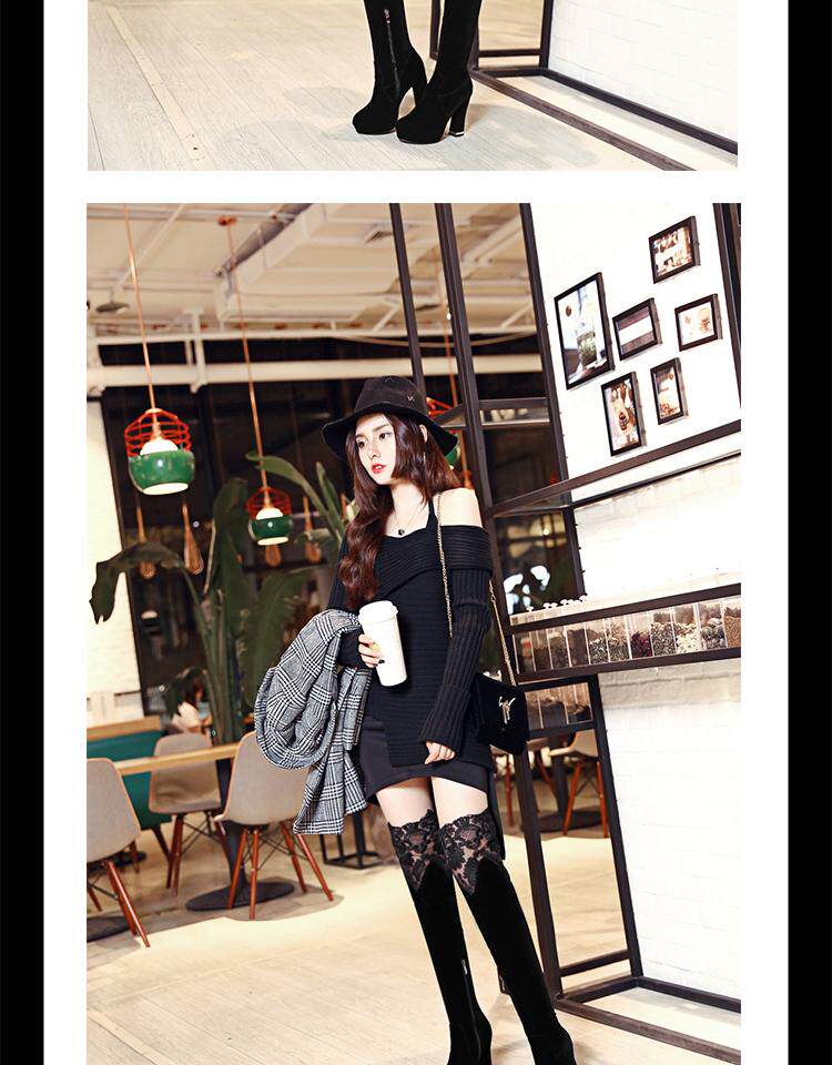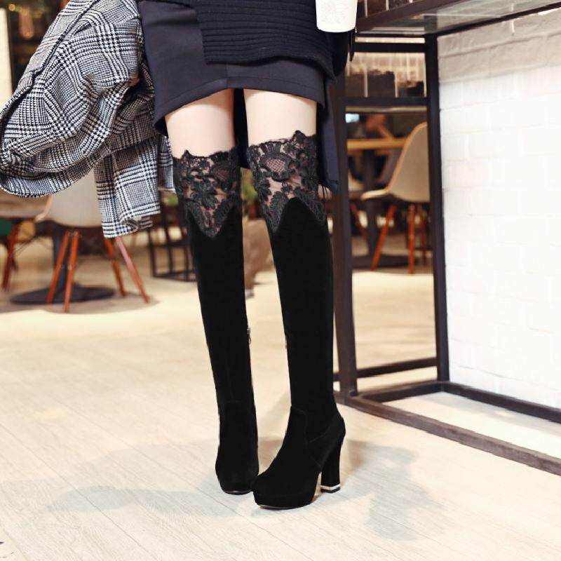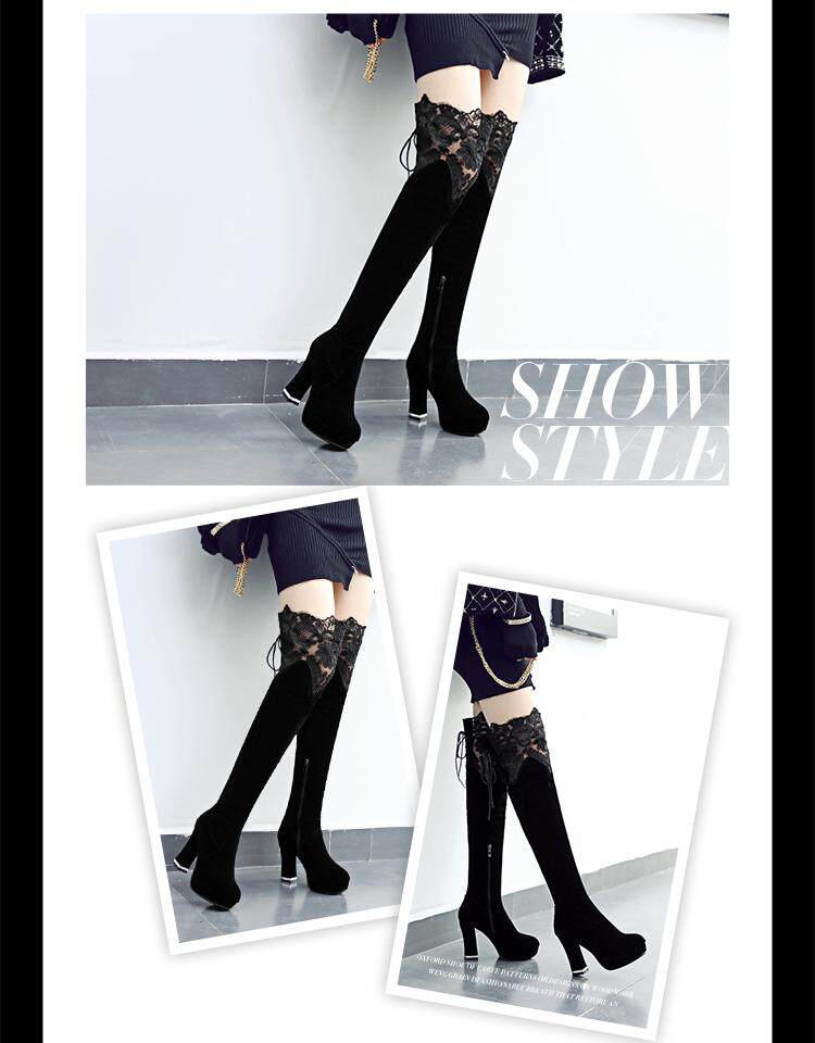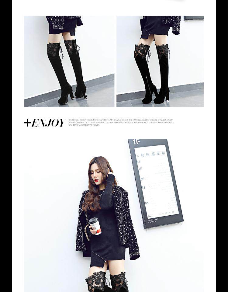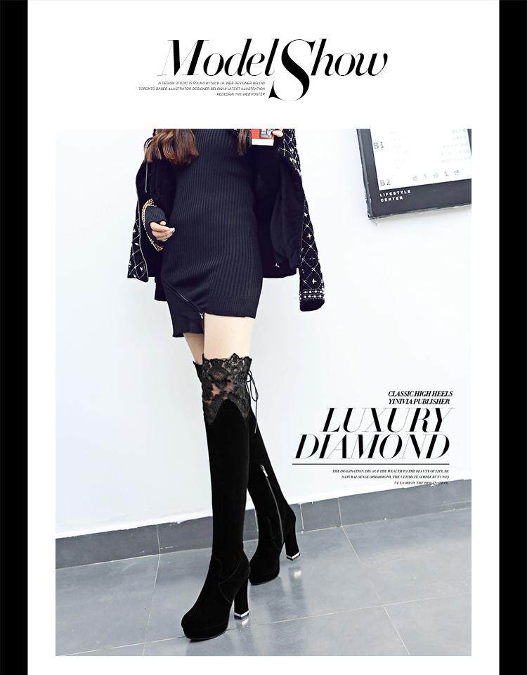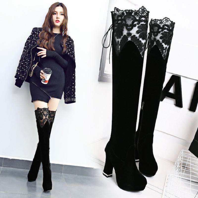 Высокие сапоги, универсальные утепленные туфли на высоком каблуке, ботинки, модель весна/осень 2017 года, в корейском стиле