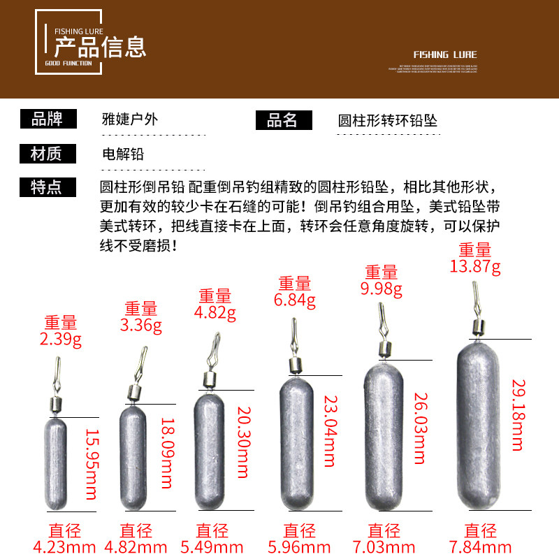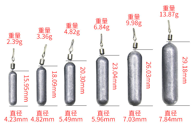 Luya Pulling свинцовый подвесной цилиндрический висящий рыбацкий рыбацкий рыбацкий хвост с весом с весом 2,5-10 грамм экспорта свинца пули