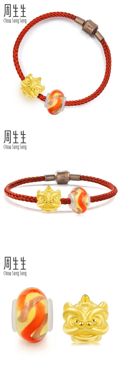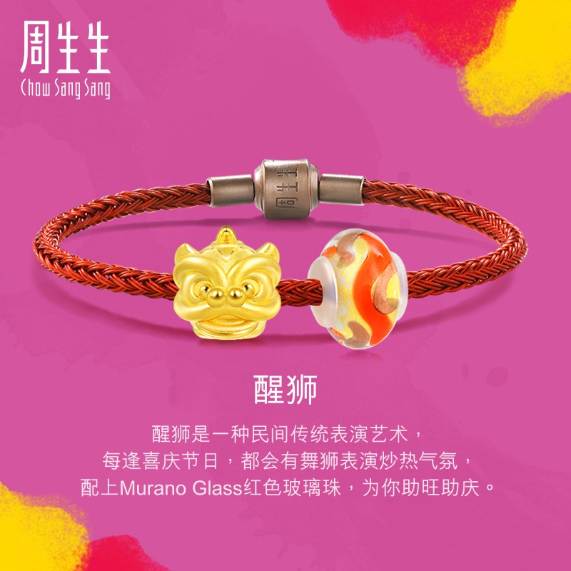 周生生 Золотая нога золота charme beads серии Wake -Up Lion Bracelet 90023b Цена