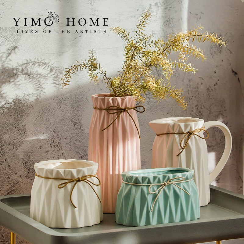 Nordic Vase Small Fresh Geometric Ceramic Hydroponic цветочный посуд Свадебный десерт Стол Стол Цветочный Искус