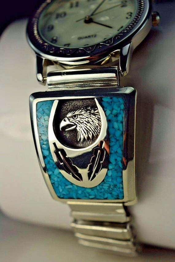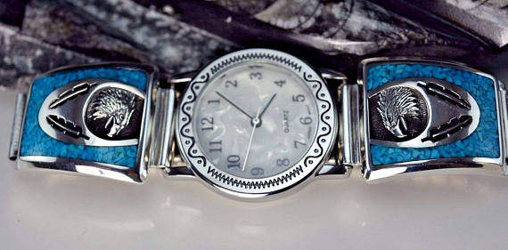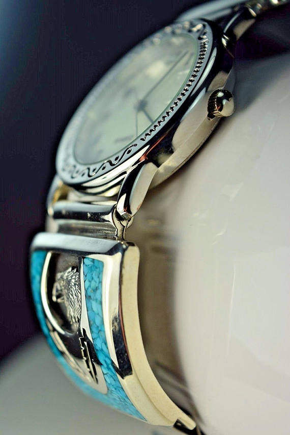 Бирюзовая инкрустация камня, часы, США, DIY, серебро 925 пробы