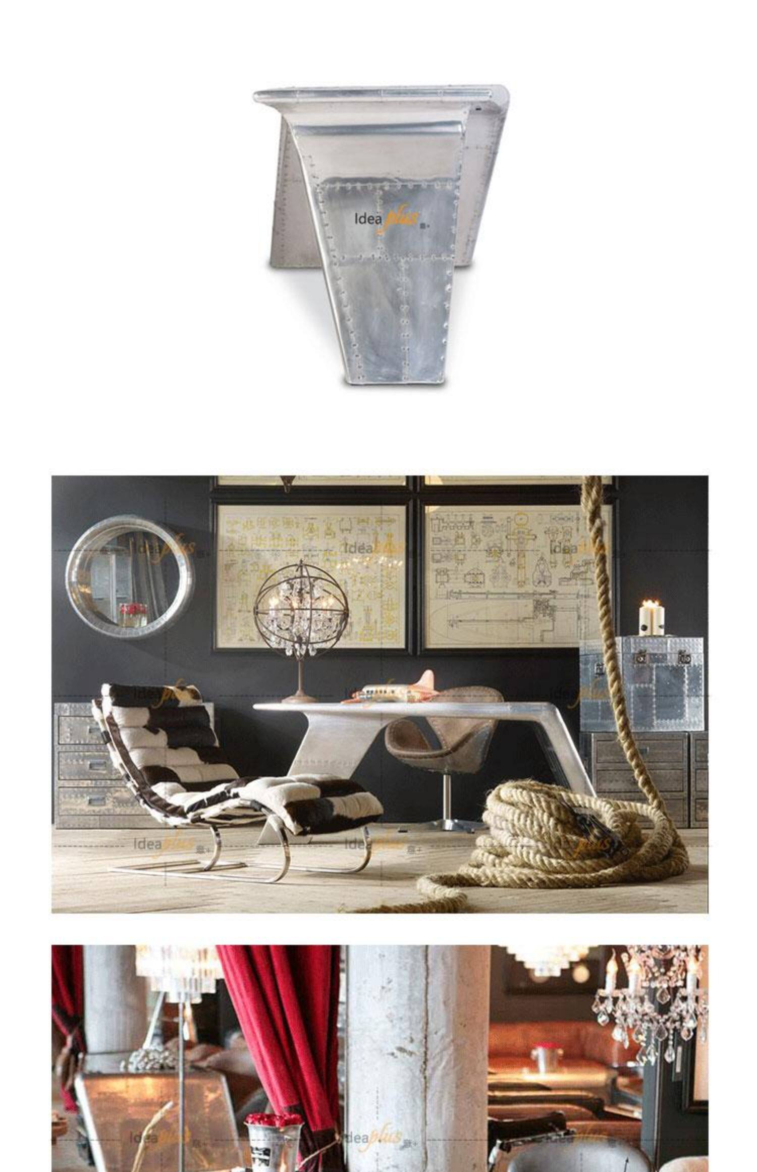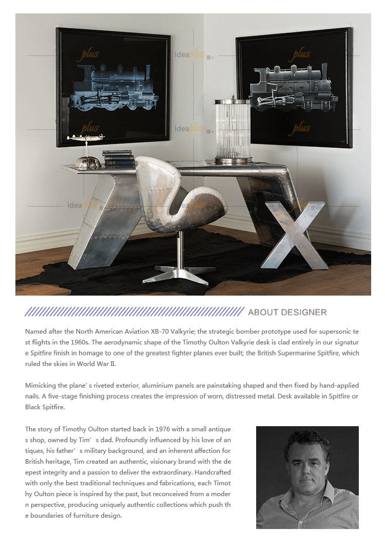 IdeaAplus Creative Industrial Wind Design Aviator Valkyrie Desk Space Aluminum Кожаный компьютерный стол