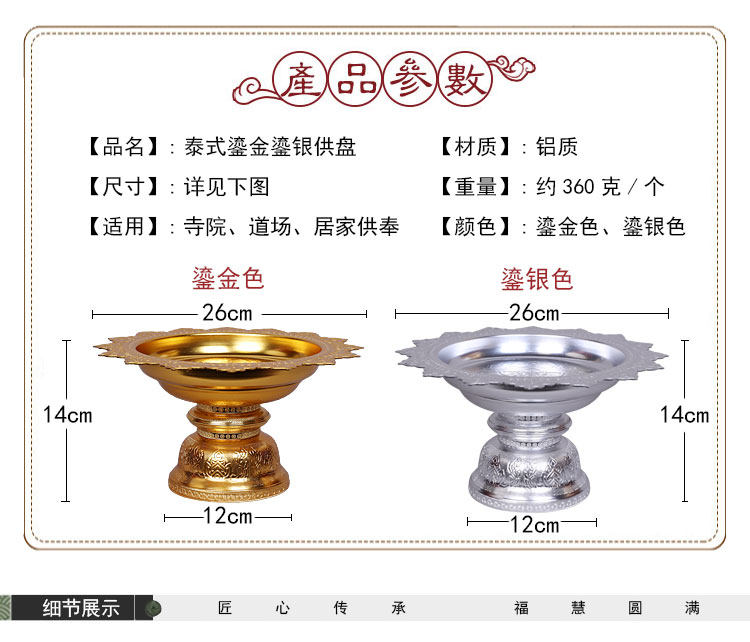 Тайский стиль высокий алюминиевый позолотный конфиденциальная тарелка фруктовая тарелка Будда Дом Будды Дом Гуанейн вода фрукты с фруктами буддийский храм магностики