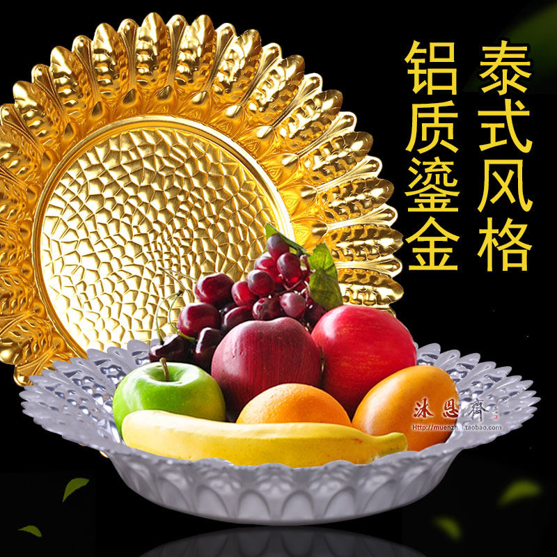 Тайская стиль фруктовая тарелка гостиная алюминиевые фруктовые украшения украшают украшение кофейного столика фрукты тарелка Будда Храмо