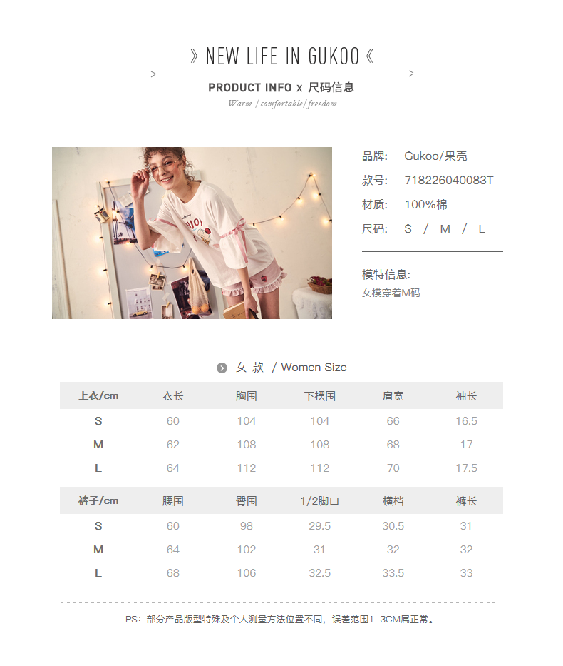 Gukoo/果壳 Хлопковая пижама для принцессы, короткий рукав