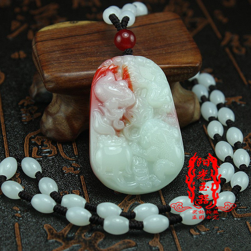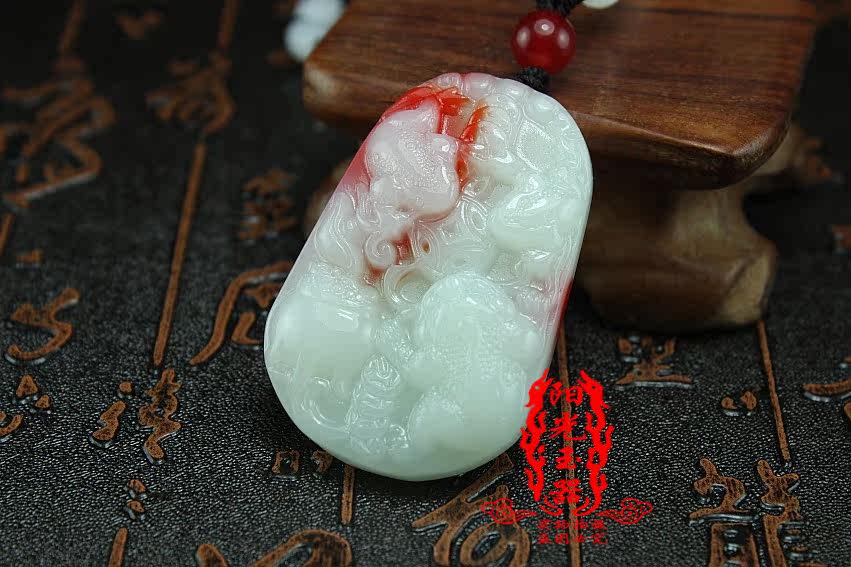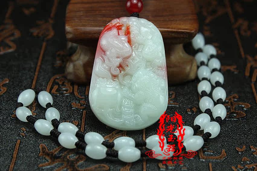Гелиотроп, подвеска из нефрита