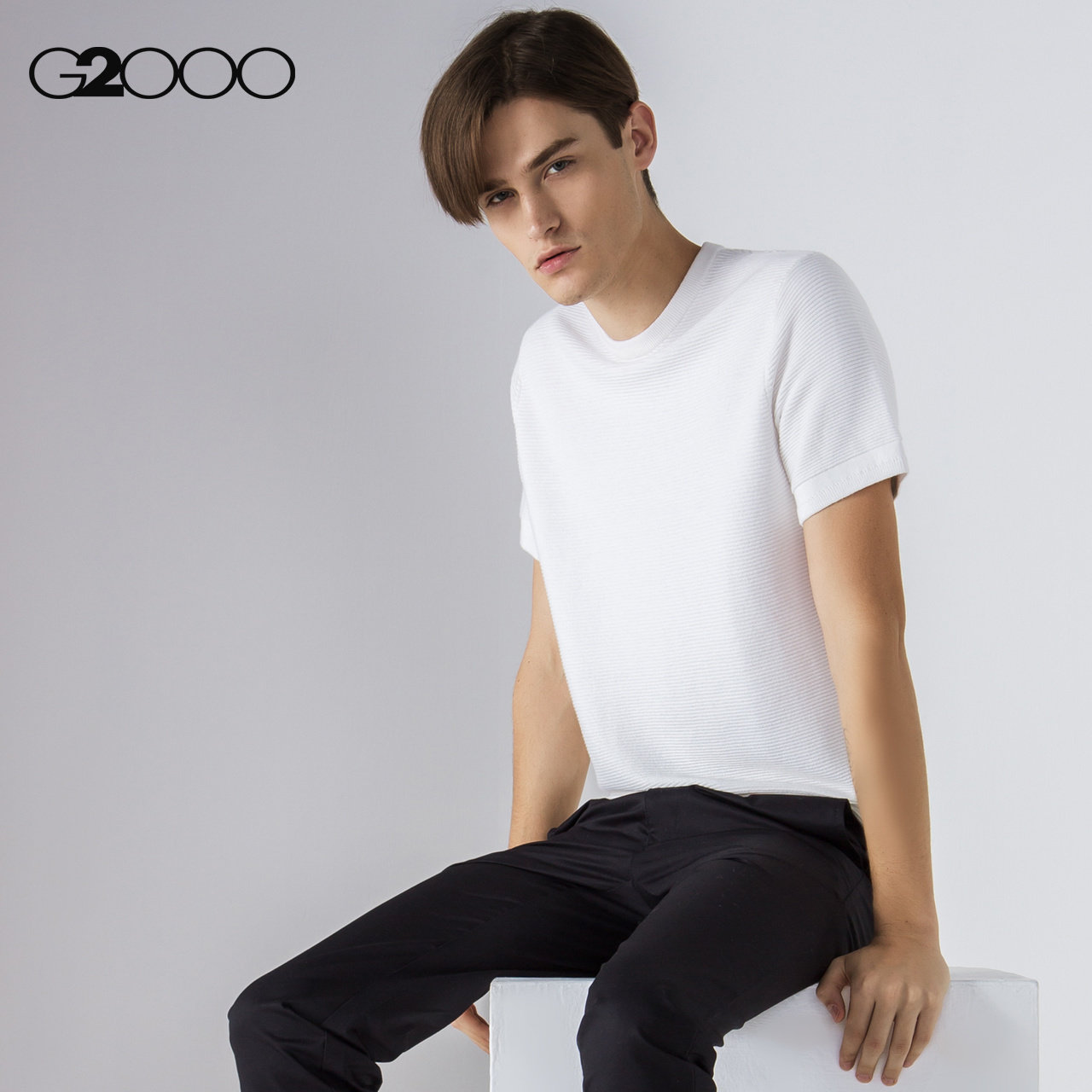 G2000 Весенняя трикотажная футболка с круглым воротником, короткий рукав
