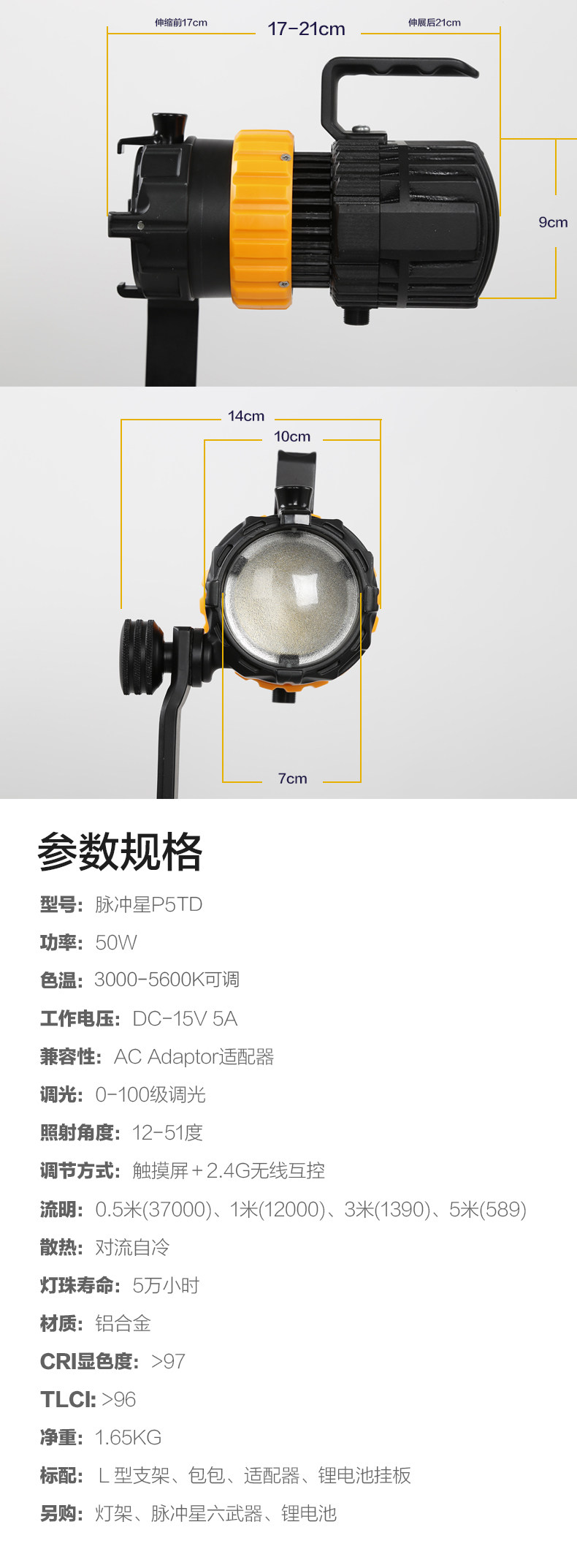 Сила 50 Вт | Регулировка света выигрыша | Регулируемое фокусное расстояние | Доступная литиевая батарея