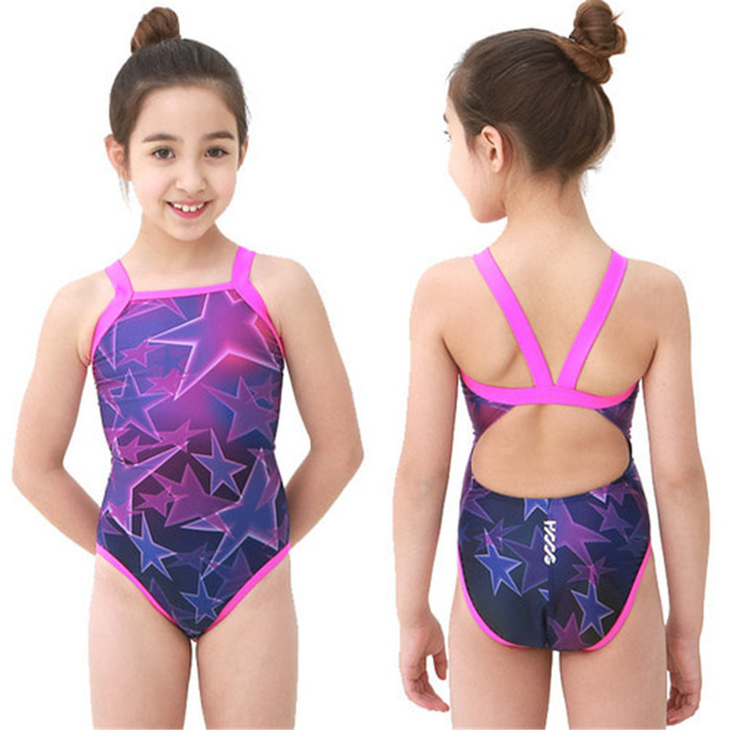 Hoog Twin Learning Learning Swimwear Purple Girl Соревнование по соревнованиям. ТРЕУГЛИЯ
