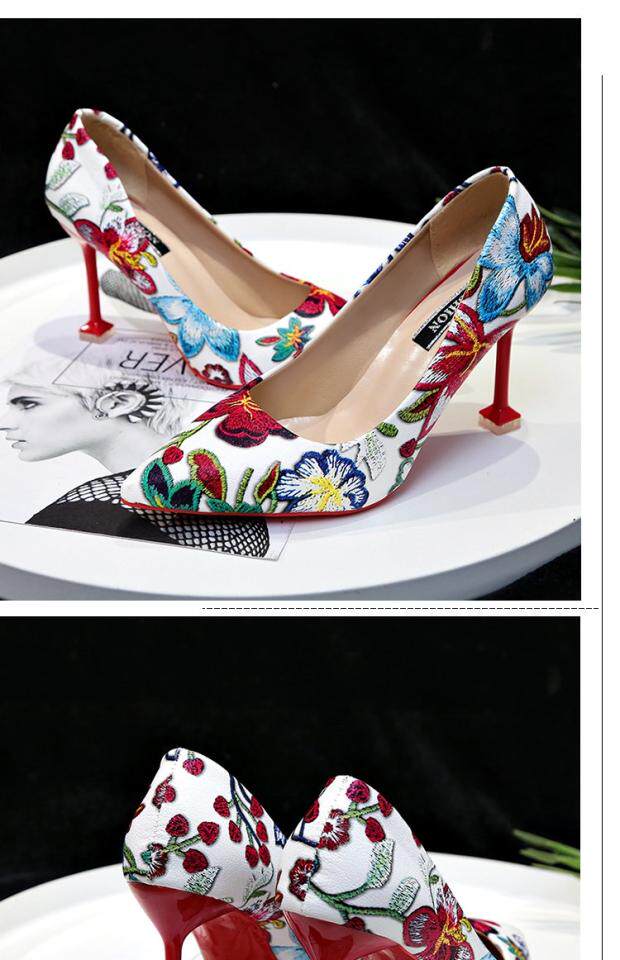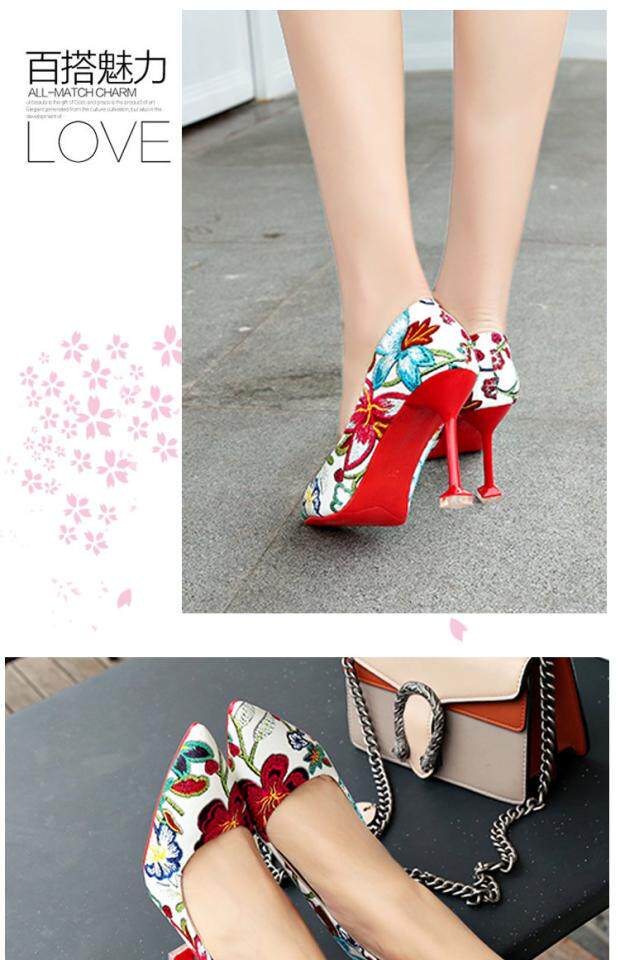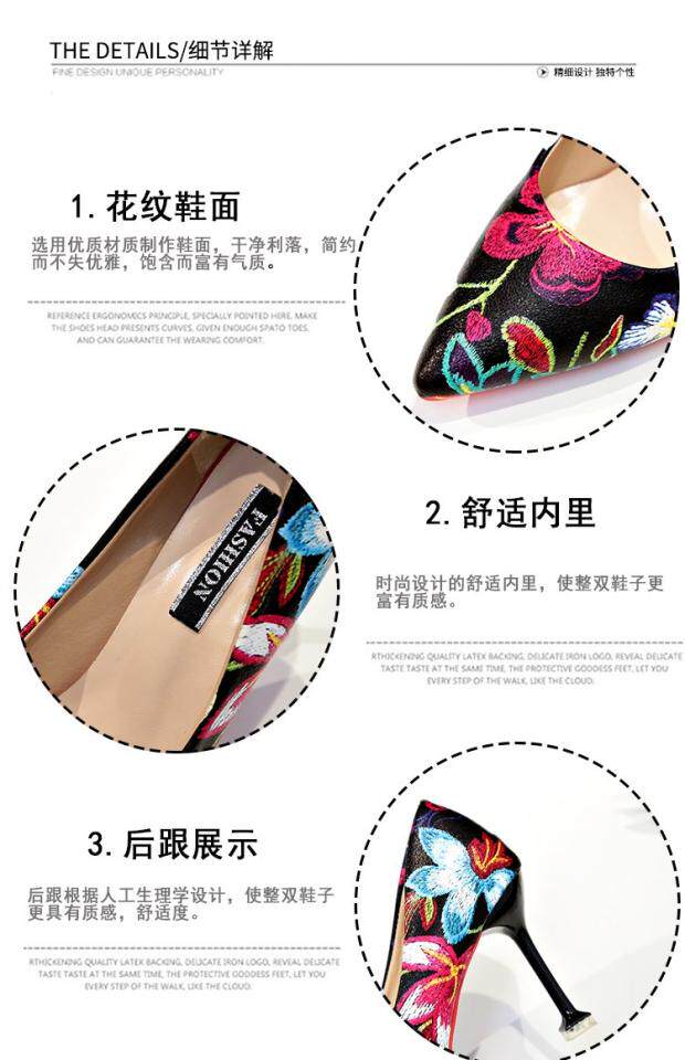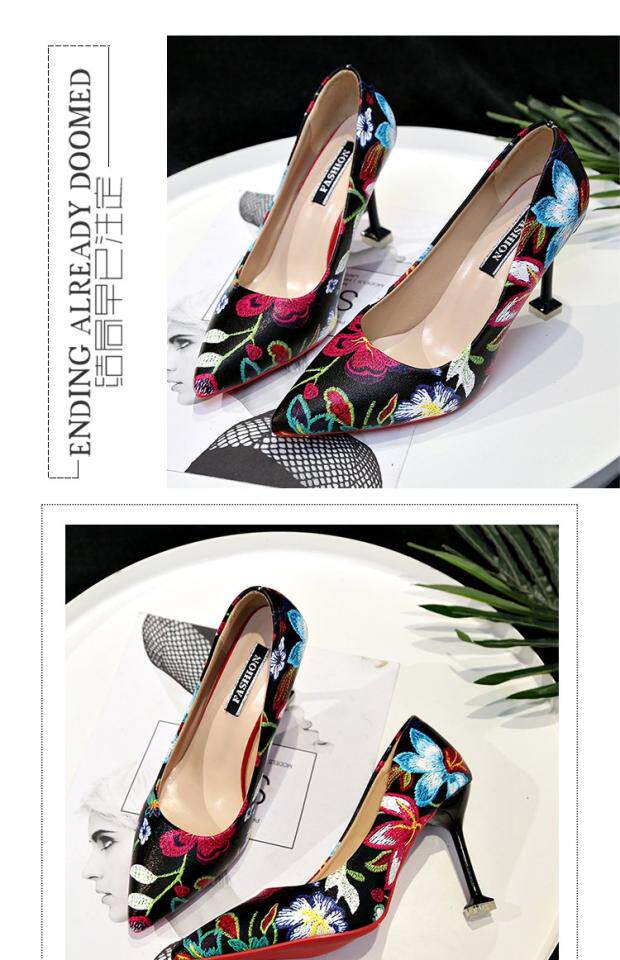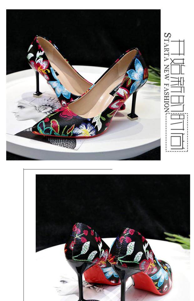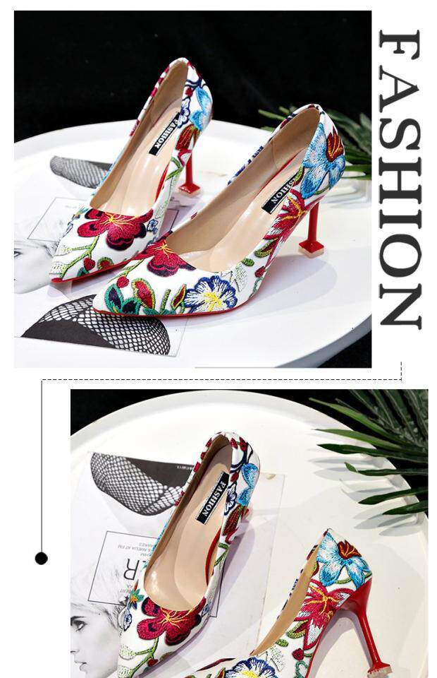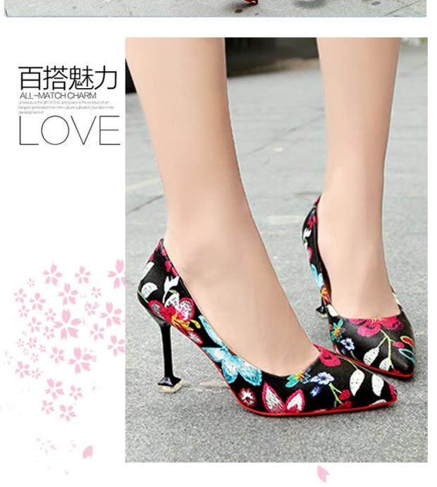Модные этнические туфли на высоком каблуке с низким вырезом, в корейском стиле, этнический стиль, в цветочек