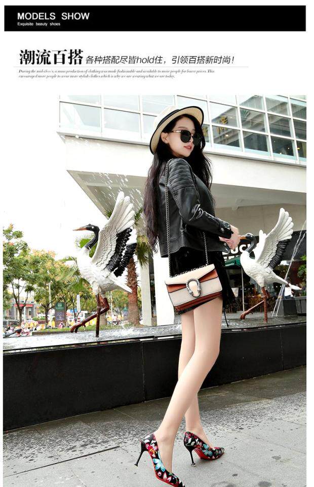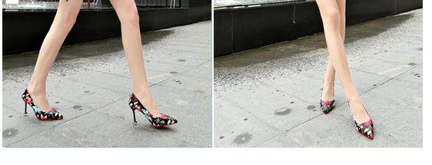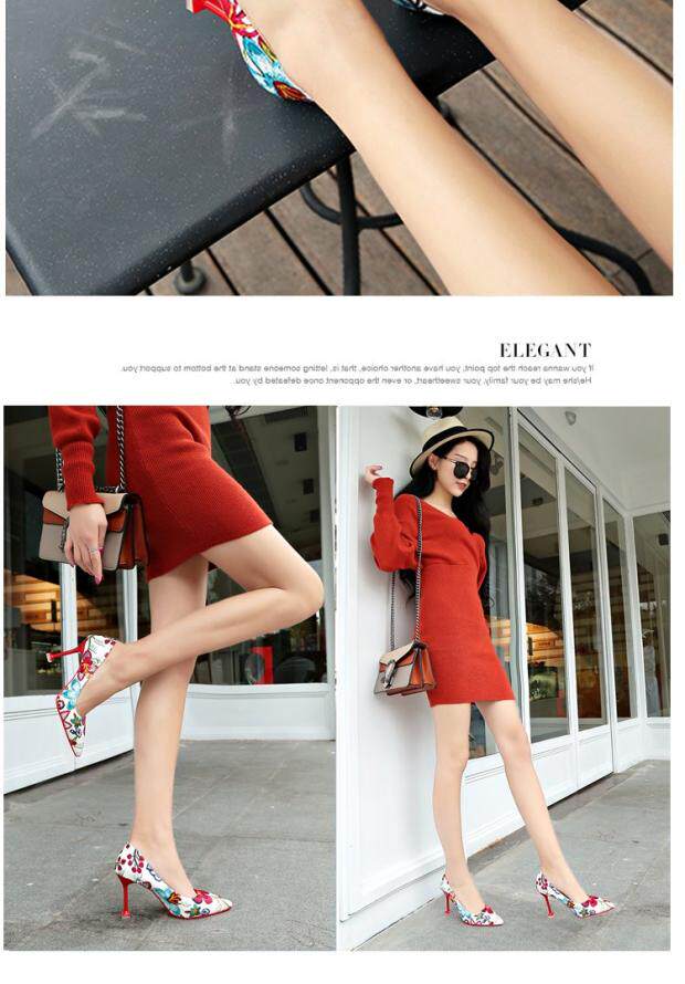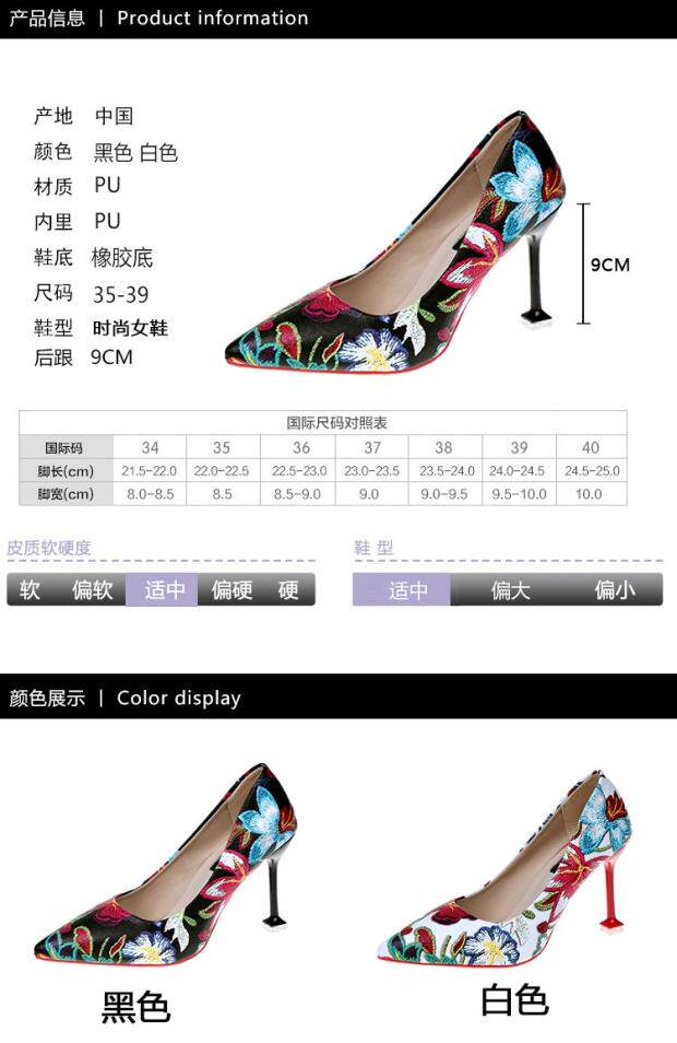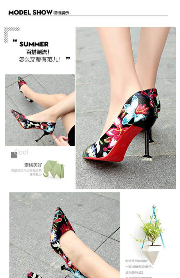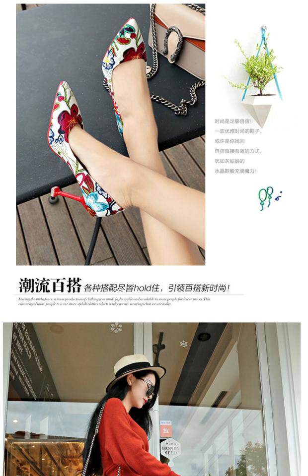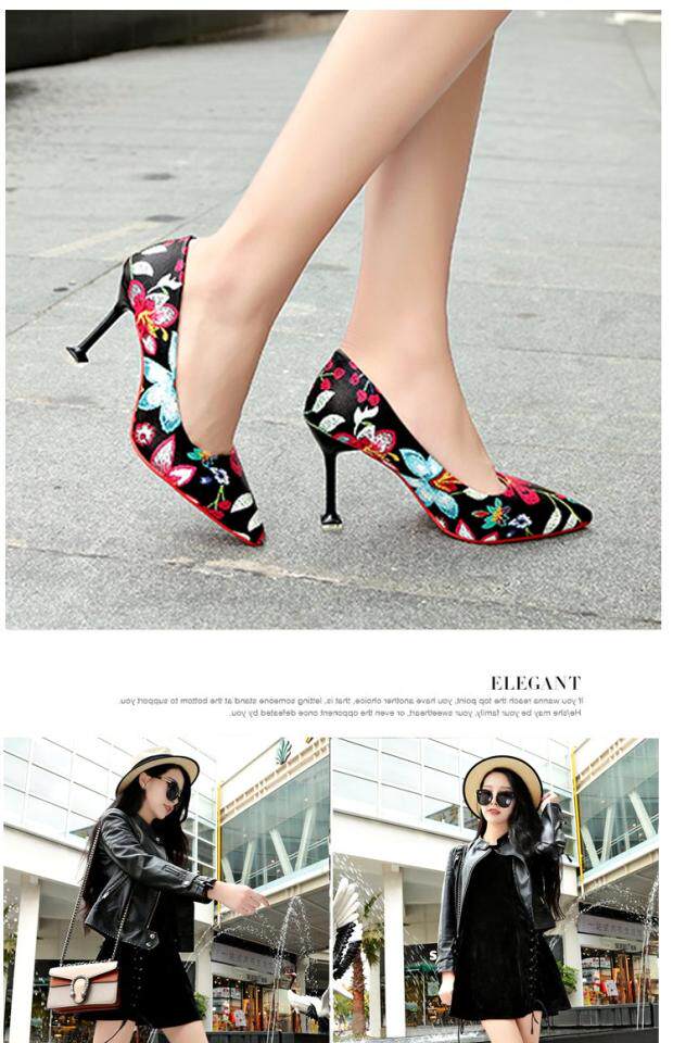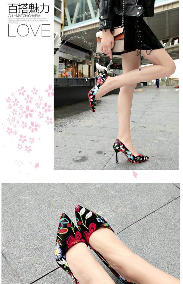 Модные этнические туфли на высоком каблуке с низким вырезом, в корейском стиле, этнический стиль, в цветочек