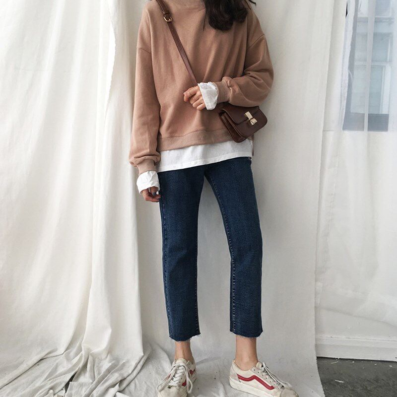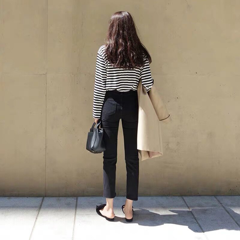 Весенние эластичные джинсы для школьников и студентов, штаны, 2023, большой размер, подходит для полных девушек, свободный прямой крой