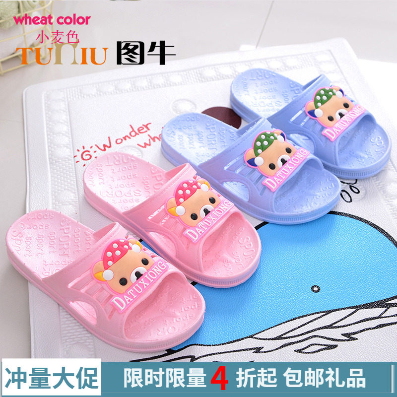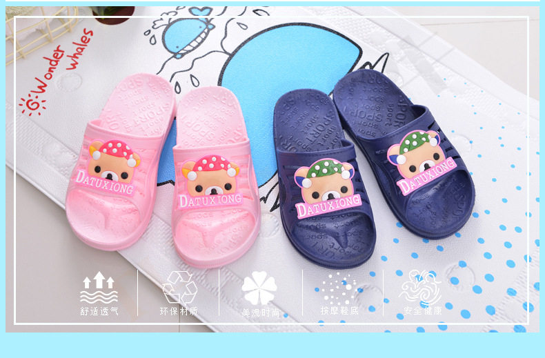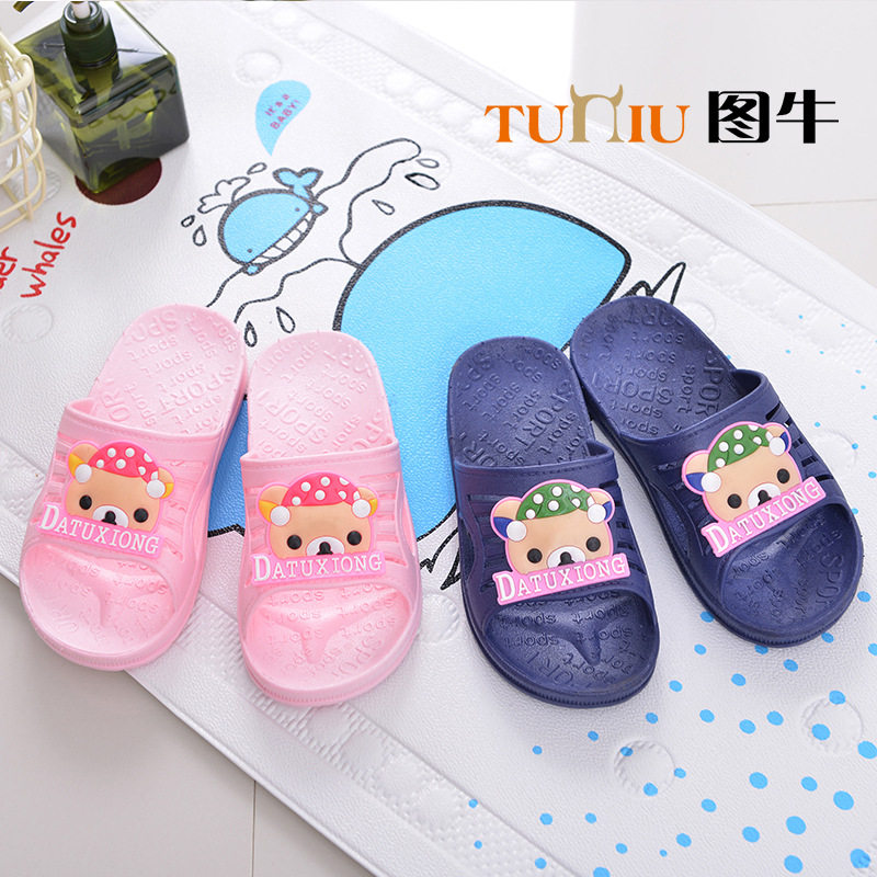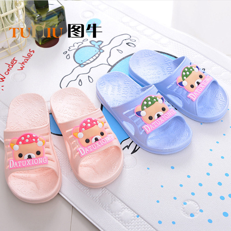 Летние детские мультяшные милые тапочки, слайдеры, с медвежатами, мягкая подошва