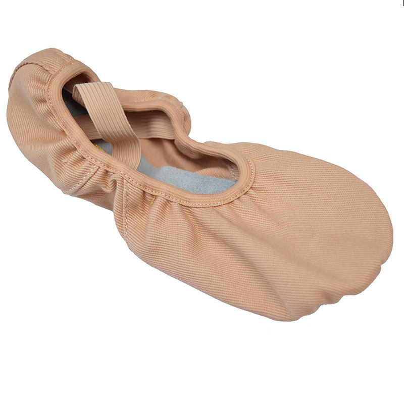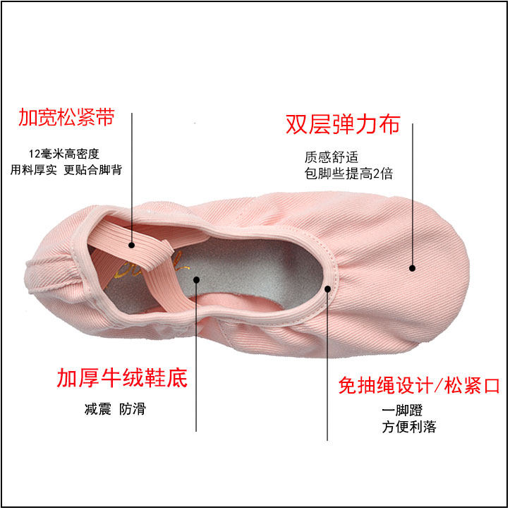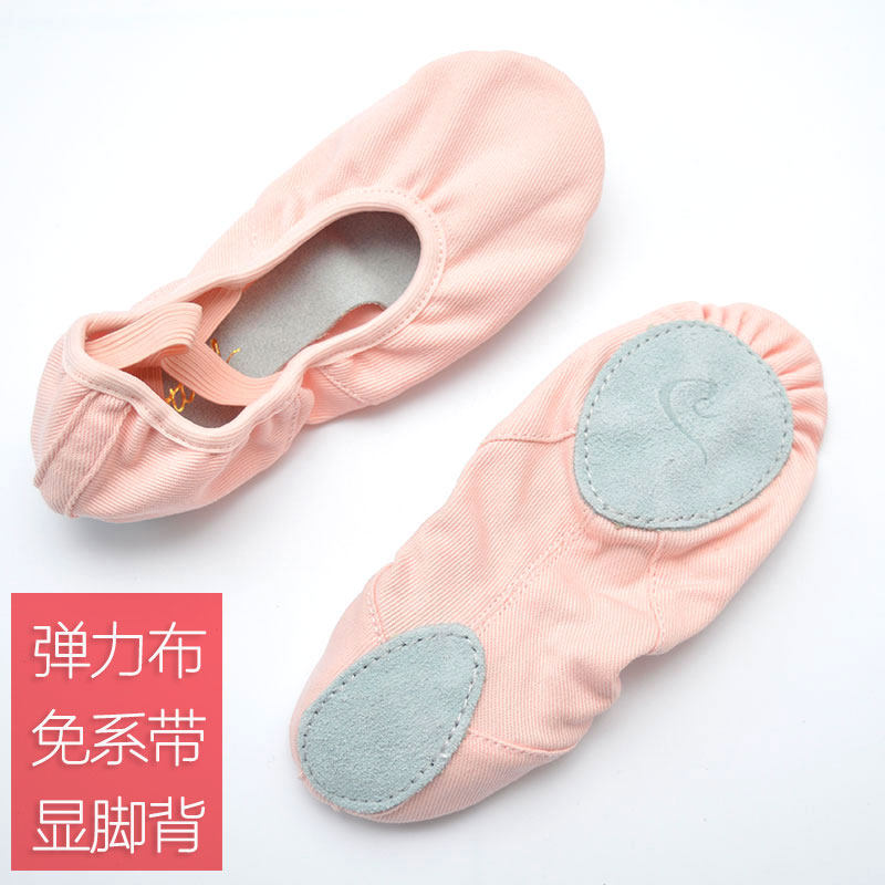 Танцевальные туфли из эластичной ткани, женские тренировочные туфли на мягкой подошве, балетки, парусиновые боди, туфли с кошачьими когтями для взрослых женщин, демонстрирующие подъем стопы.
