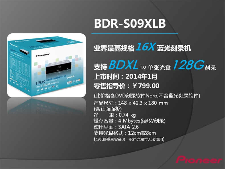 Pioneer 16x Desktop встроенный серийный Virgin Blue Light Carrier BDR-S09XLB/209 Поддерживает BD128G