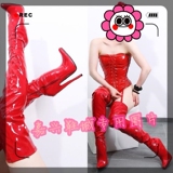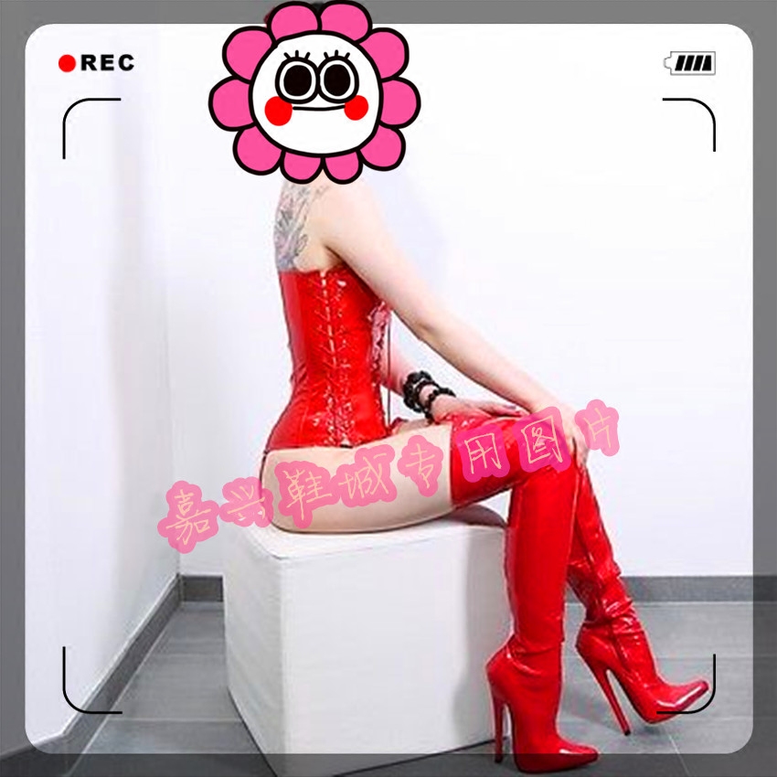Европейские и американские сверхвысокие каблуки и сексуальные глянцевые ботфорты выше колена из красной лакированной кожи высотой 18 см на низкой подошве для женщин V002