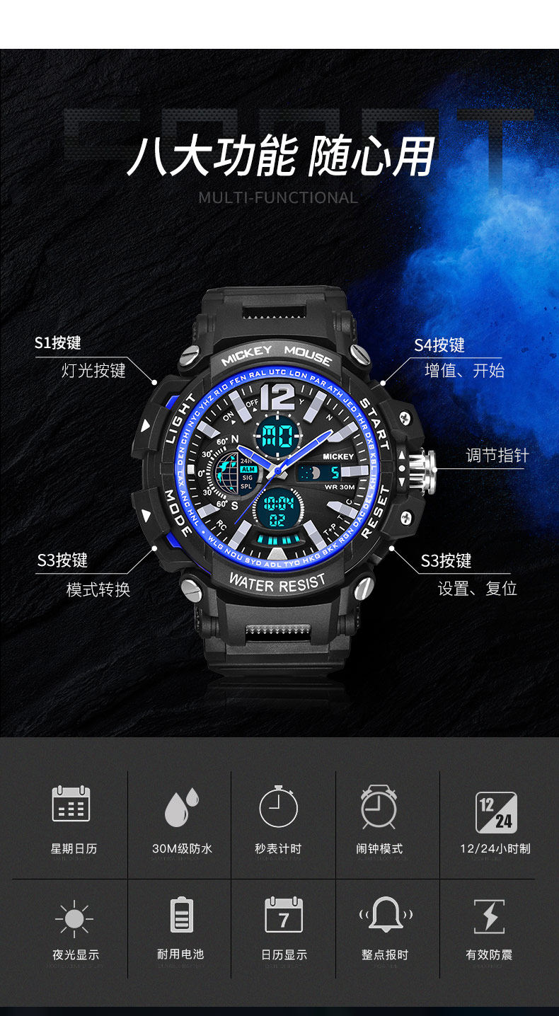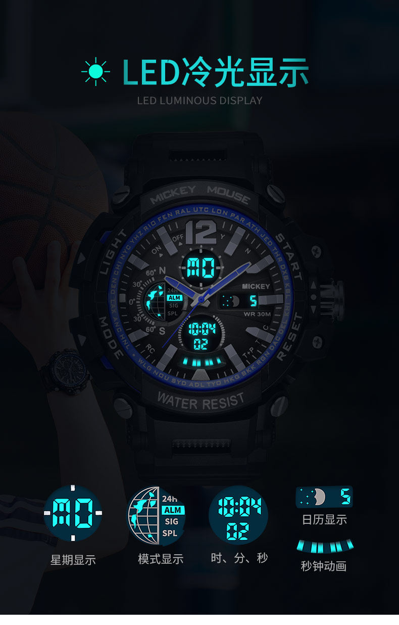 Дисней, водонепроницаемые мужские часы, модные трендовые механические цифровые часы для мальчиков, для средней школы