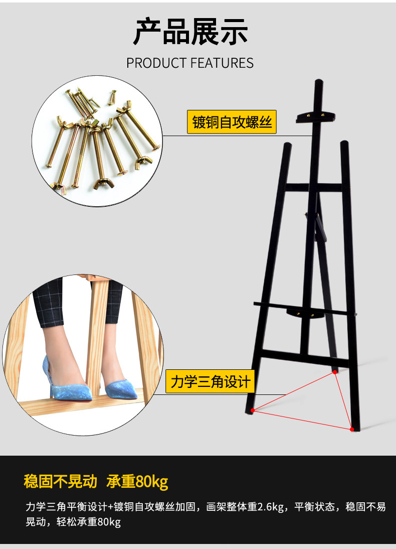 Черный регулируемый деревянный стенд, детская доска для рисования, постер, деревянная складная универсальная трубка для начинающих для взрослых