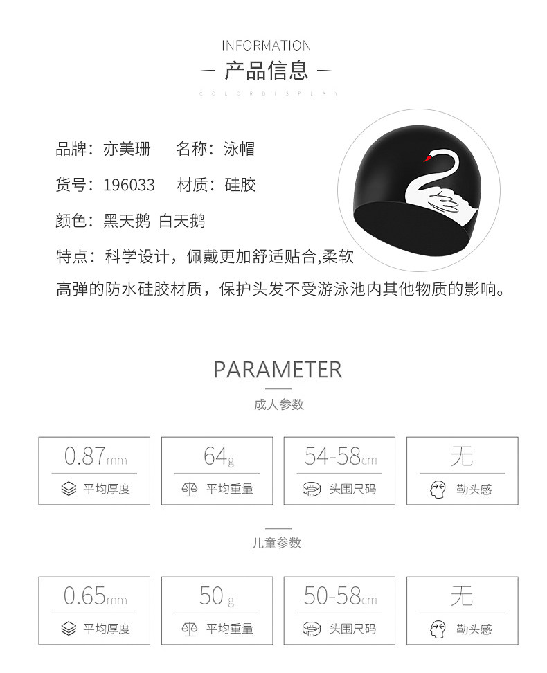 亦美珊 Водонепроницаемая модная резиновая безопасная плавательная шапочка для плавания