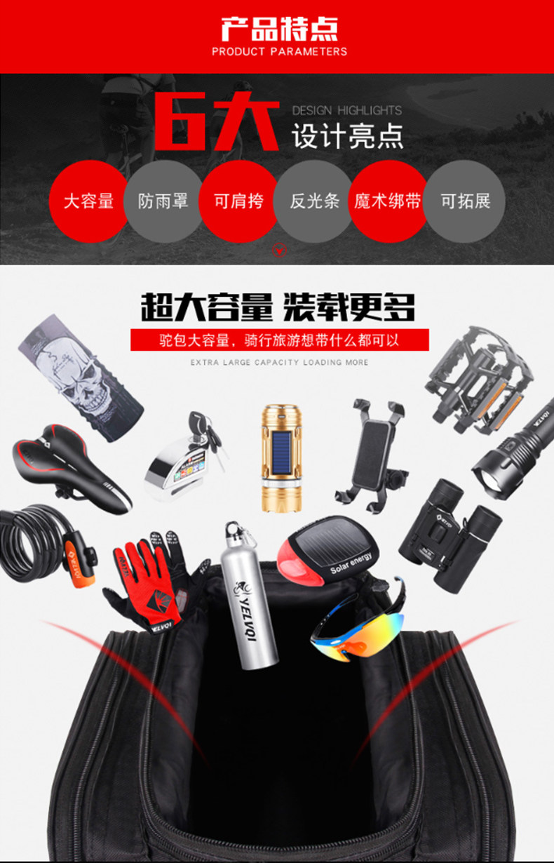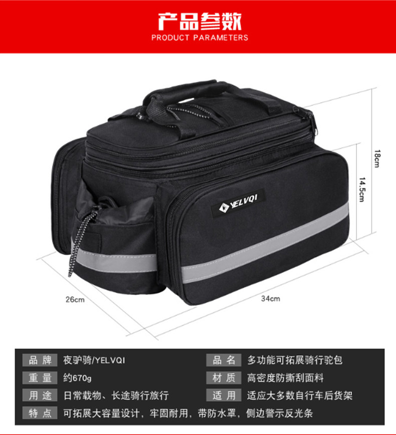 夜驴骑 Горный велосипед, вместительный и большой водонепроницаемый багажник для велосипеда, упаковка для путешествий для велоспорта, снаряжение