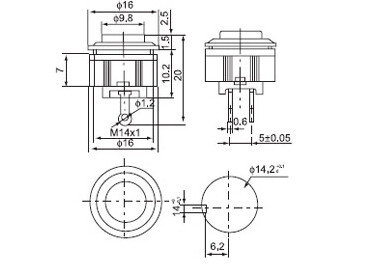 Переключатель переключения кнопок DS-500 DS-501 Не проходит/нажат для открытого отверстия 14 мм