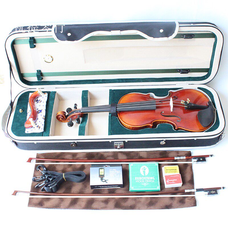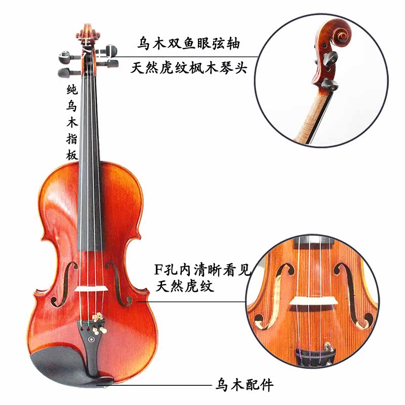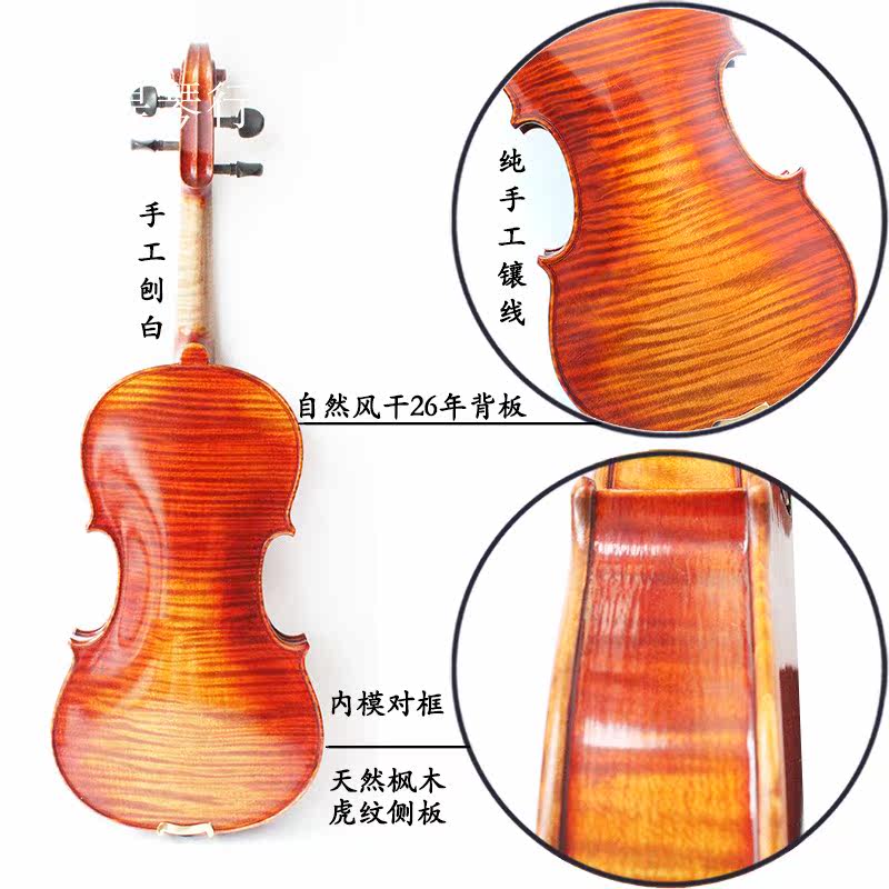 Скрипка с высокой точностью, в цельной тарелке тигр используется натуральный воздушный, 26 -летний кленовый пластин, боковая пластина и натуральный воздухоотделение в течение 17 лет.С расширенными аксессуарами из черного дерева.