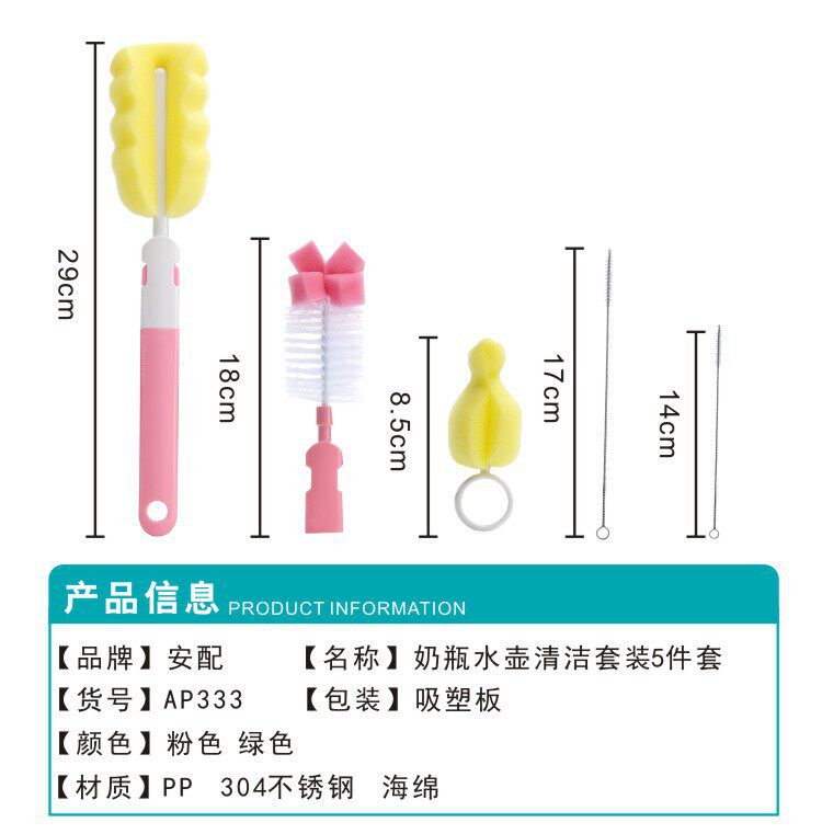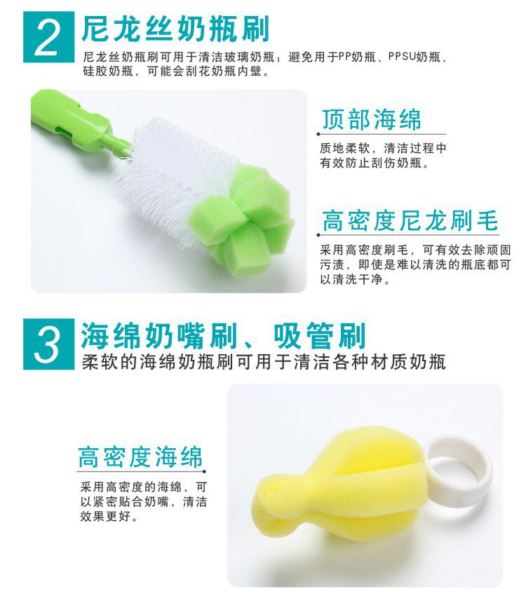 Ершик для бутылочки, кисть, поролоновая щеточка, бутылочка для кормления со стаканом, трубочка