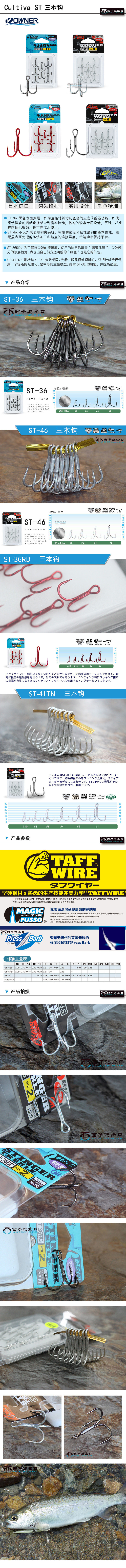 Япония импортированный владелец 3 -й Luya Hook ST36 ST46 41 Трехмозвенные заливные рыбные крючки пресноводная рыбалка