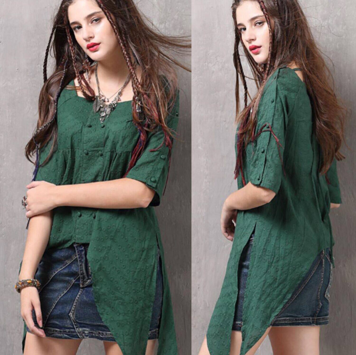 Летняя ретро рубашка, квадратный вырез