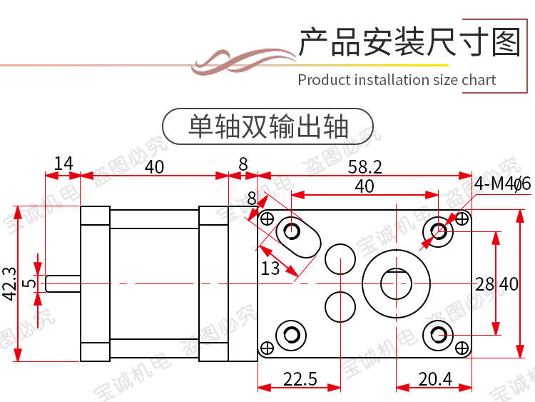 Двойной выходной вал 42 -шаг.